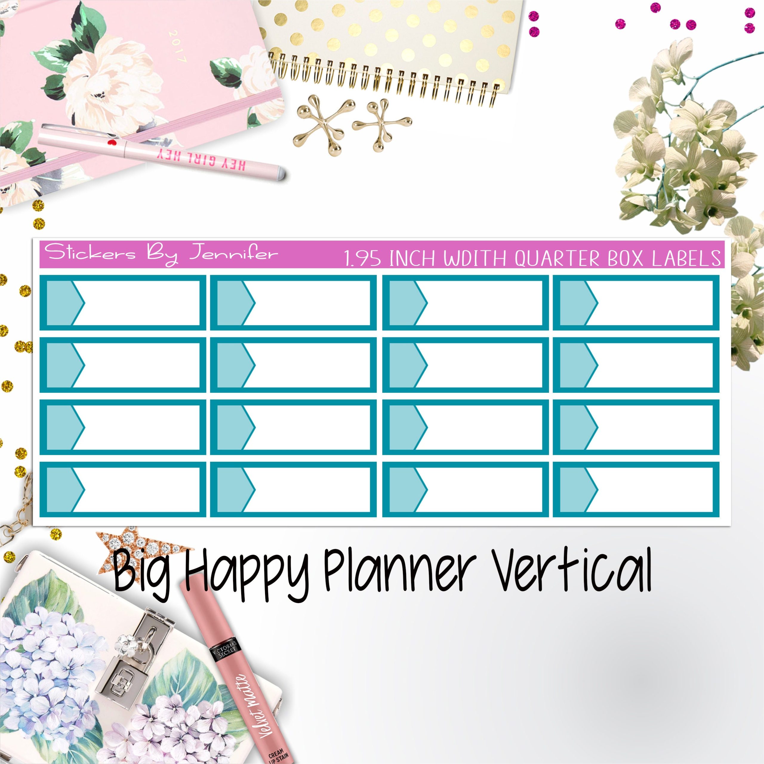 1.95 inch Width Quarter Box Labels 030 for Big Happy Planner Vertical Planner Stickers