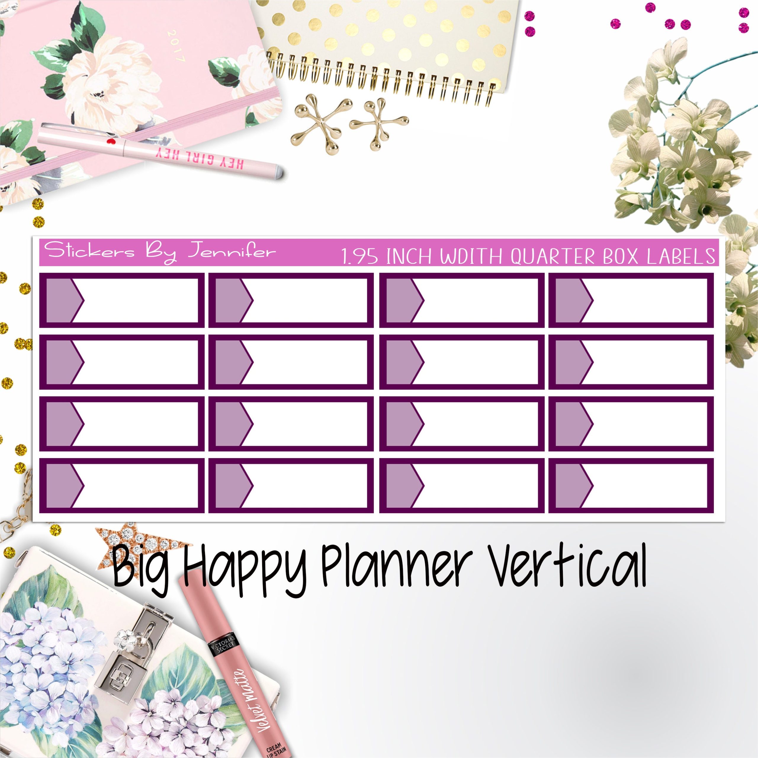 1.95 inch Width Quarter Box Labels 084 for Big Happy Planner Vertical Planner Stickers
