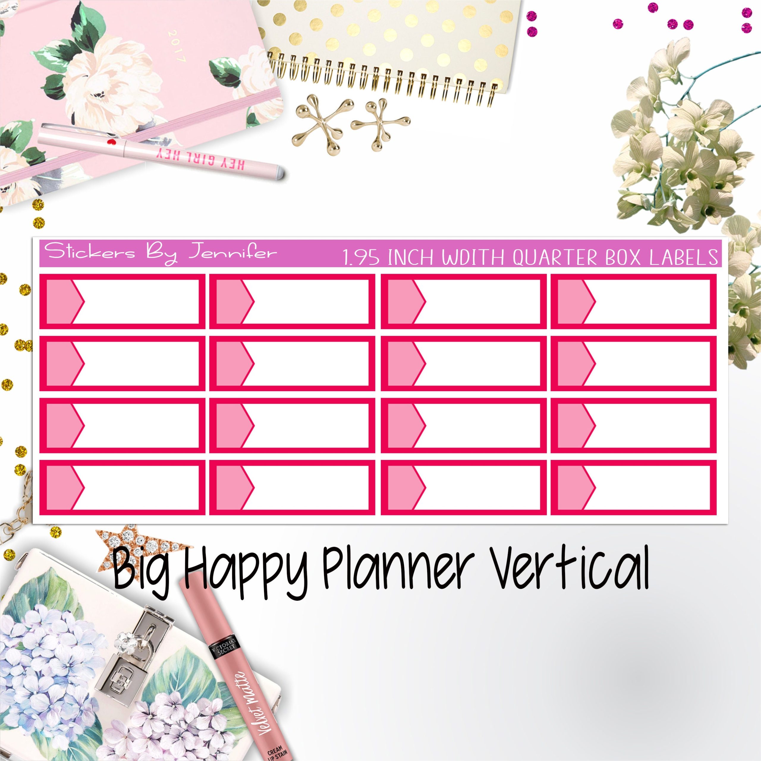 1.95 inch Width Quarter Box Labels 089 for Big Happy Planner Vertical Planner Stickers