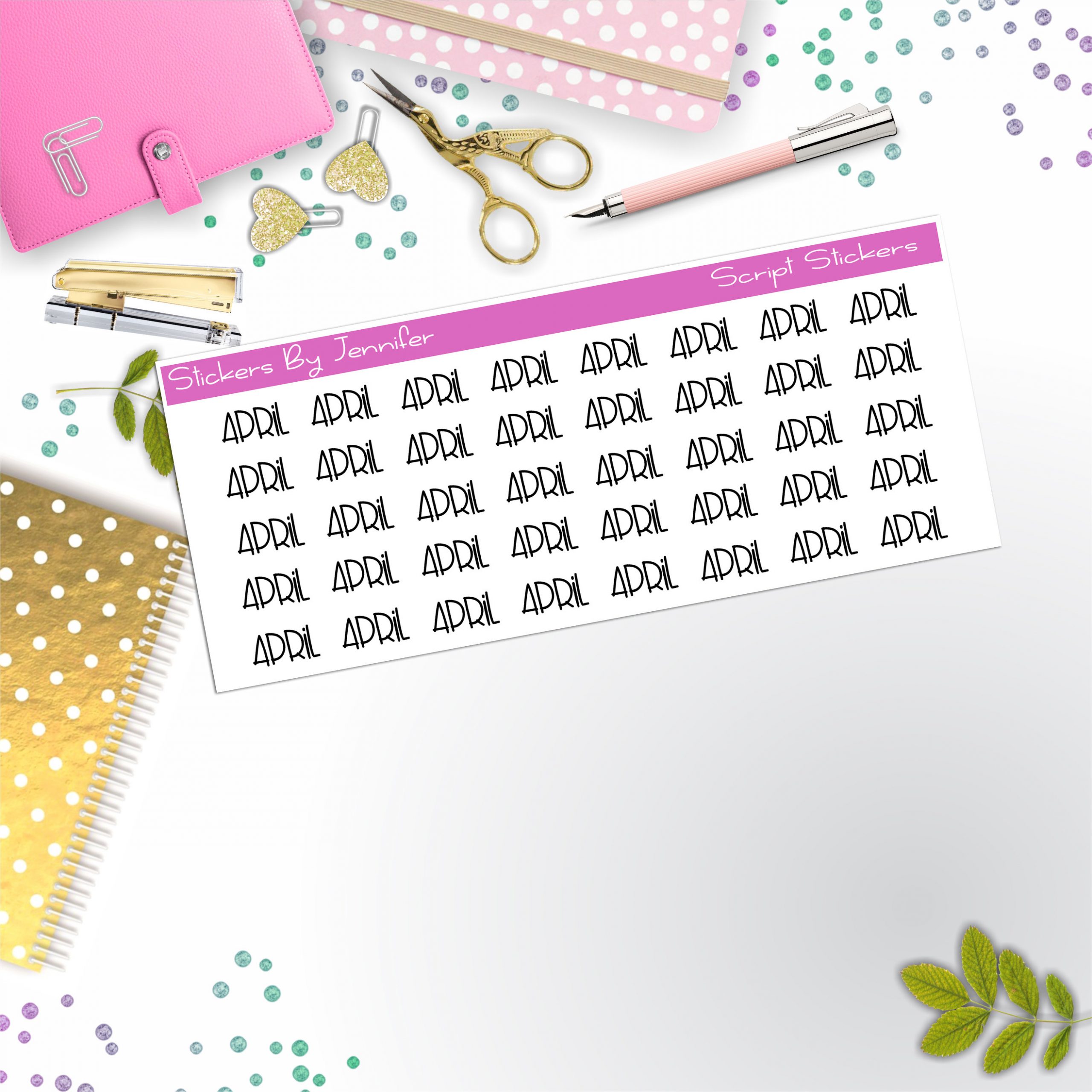April Script Stickers, Typography Stickers, Planner Stickers