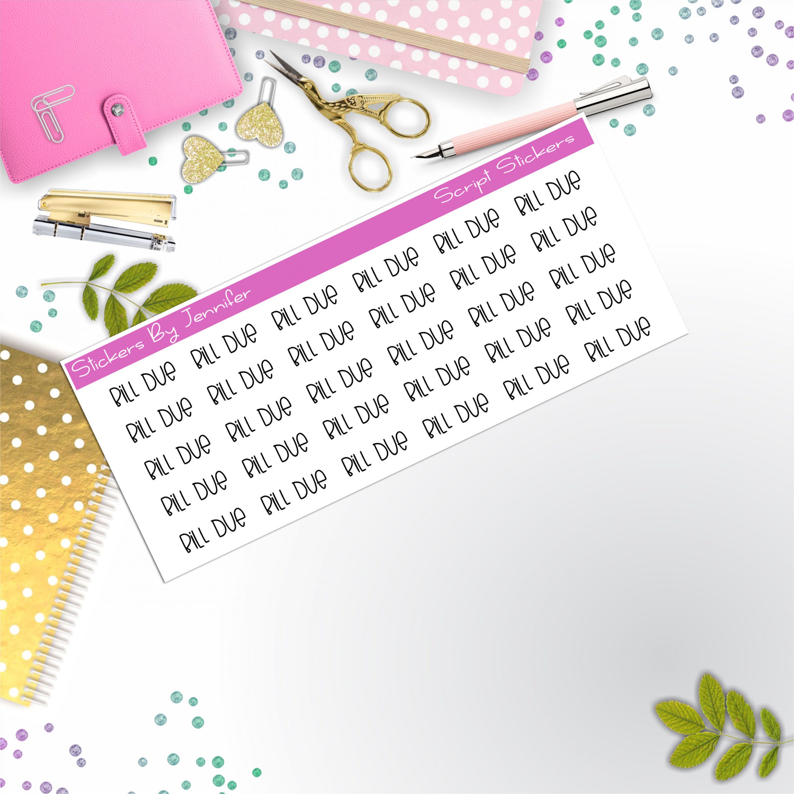 Bill Due Script Stickers, Typography Stickers, Planner Stickers