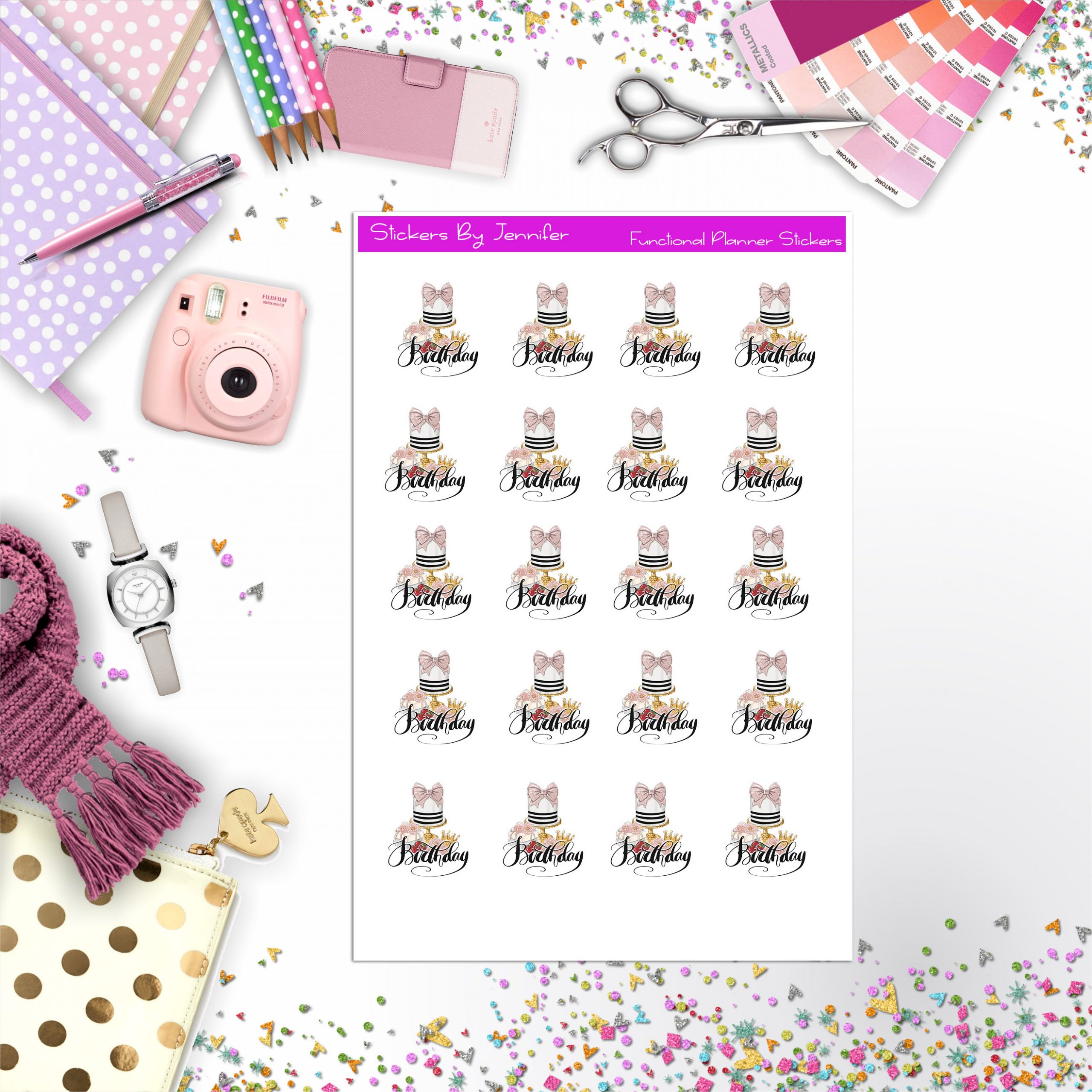 Birthday Planner Stickers, Bullet Journal Stickers, Functional Planner Stickers, Stationary Stickers