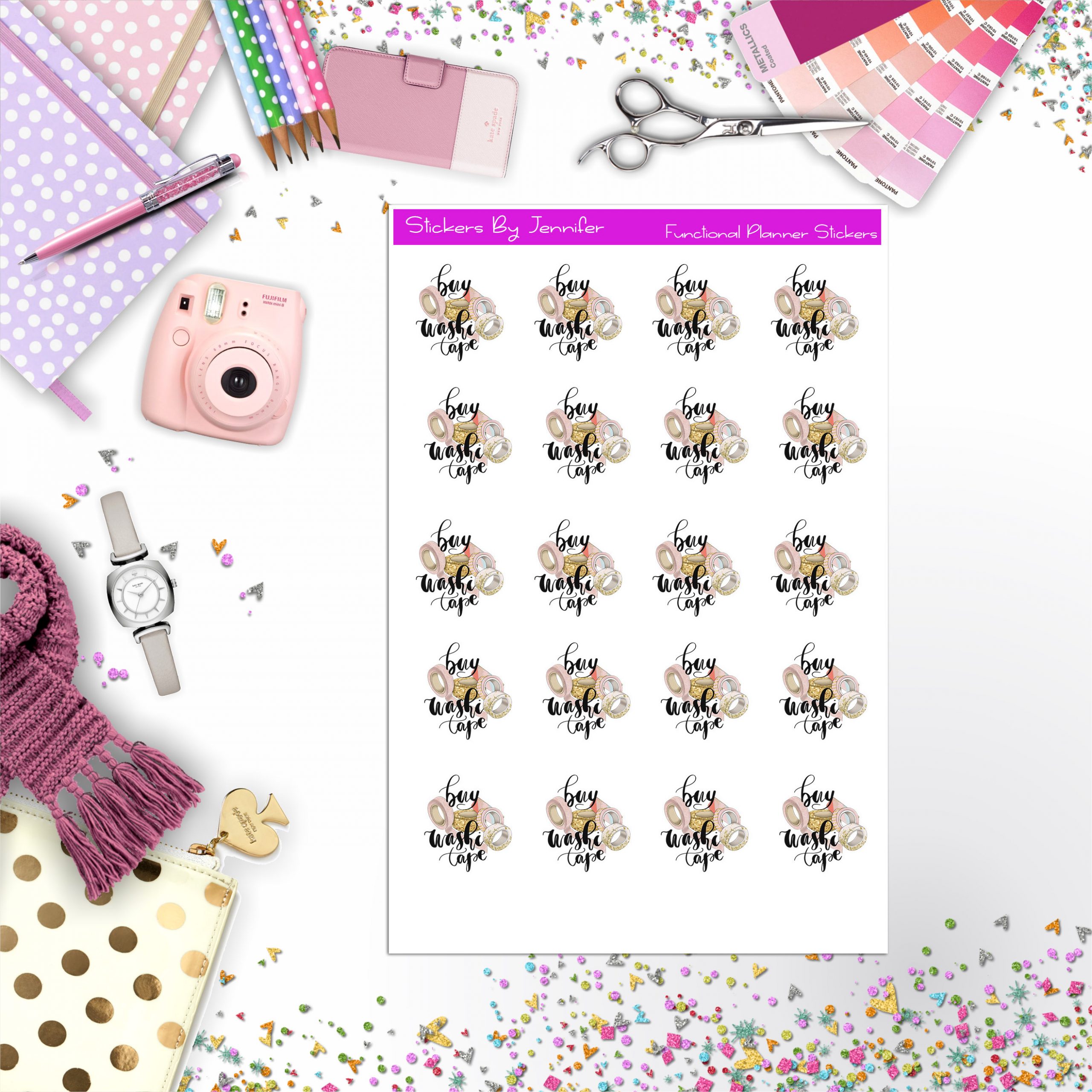 Buy Washi Tape Icon Planner Stickers, Bullet Journal Stickers, Functional Planner Stickers, Stationary Stickers