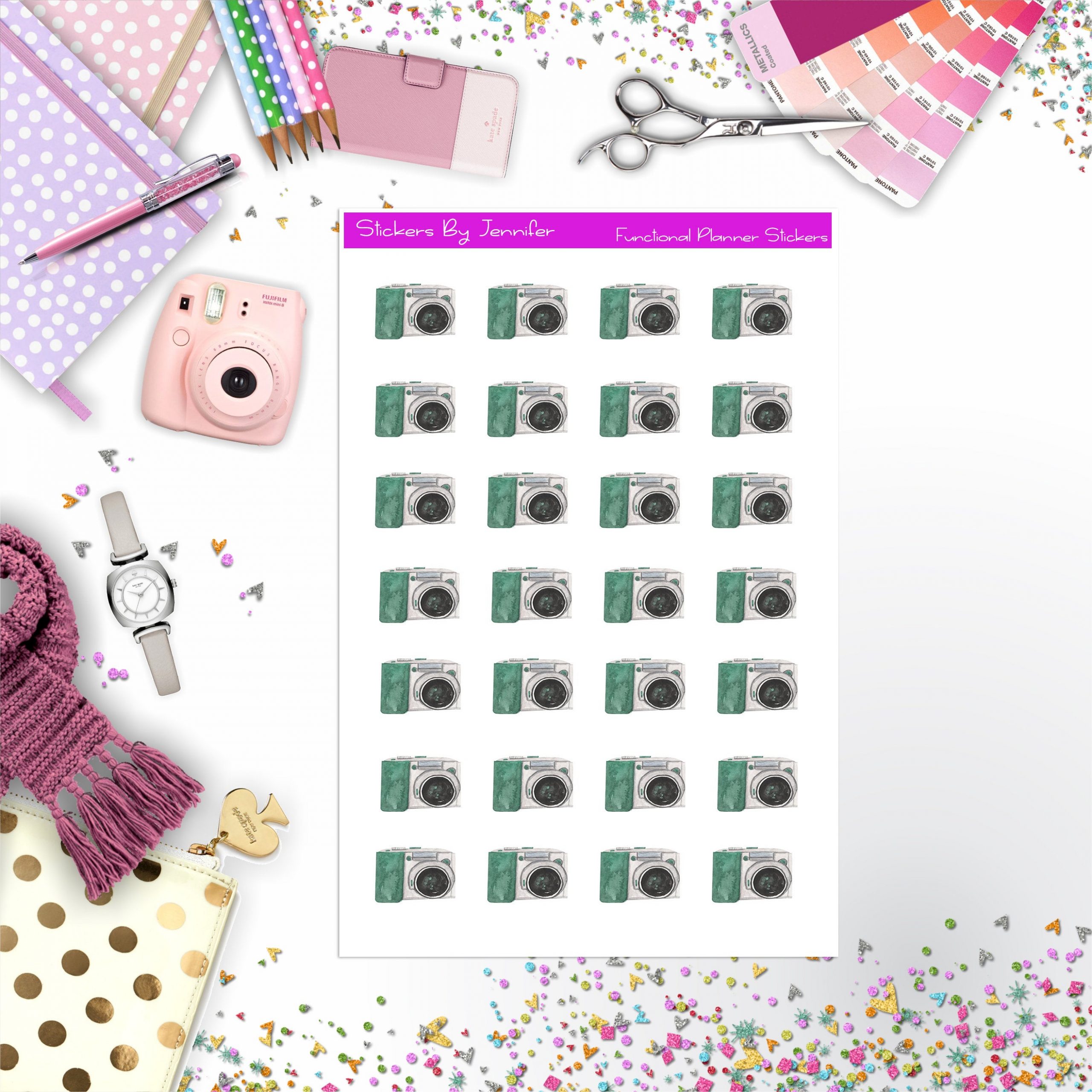 Camera Watercolor Stickers, Planner Stickers, Journal Stickers, Functional Planner Stickers, Stationary Stickers