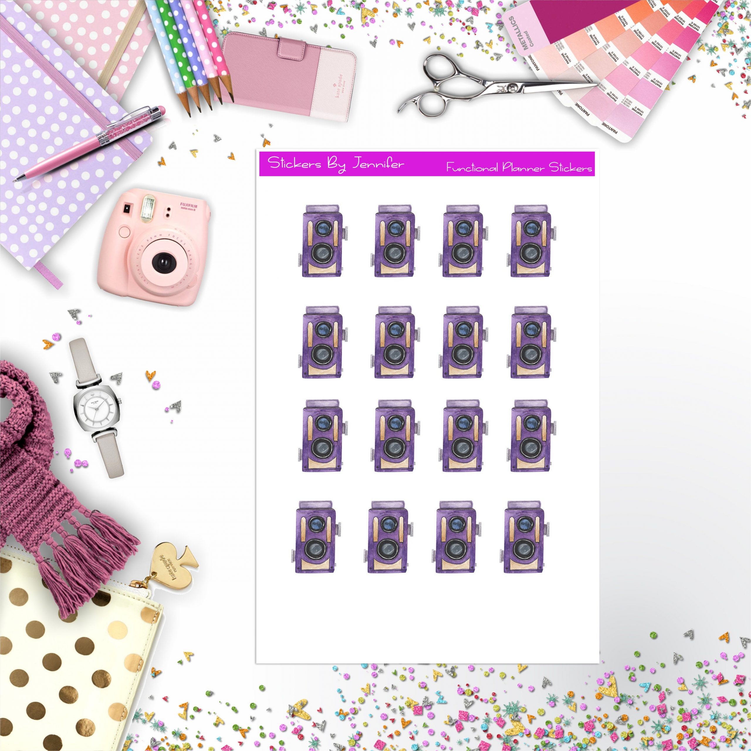 Camera Watercolor Stickers, Planner Stickers, Journal Stickers, Functional Planner Stickers, Stationary Stickers