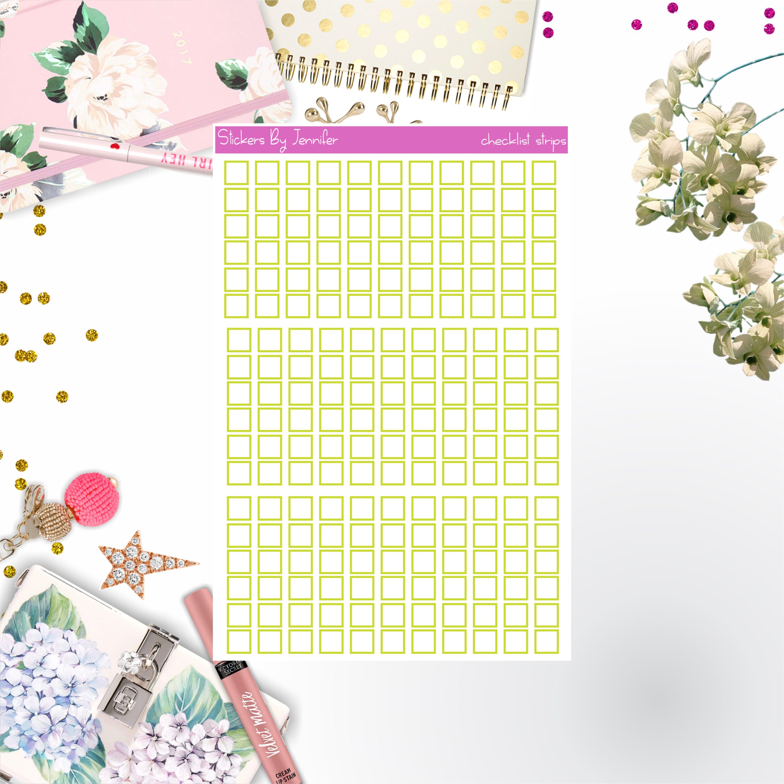 Checklist Strip Stickers 008, Bullet Journal Stickers, Functional Planner Stickers, Stationary Stickers