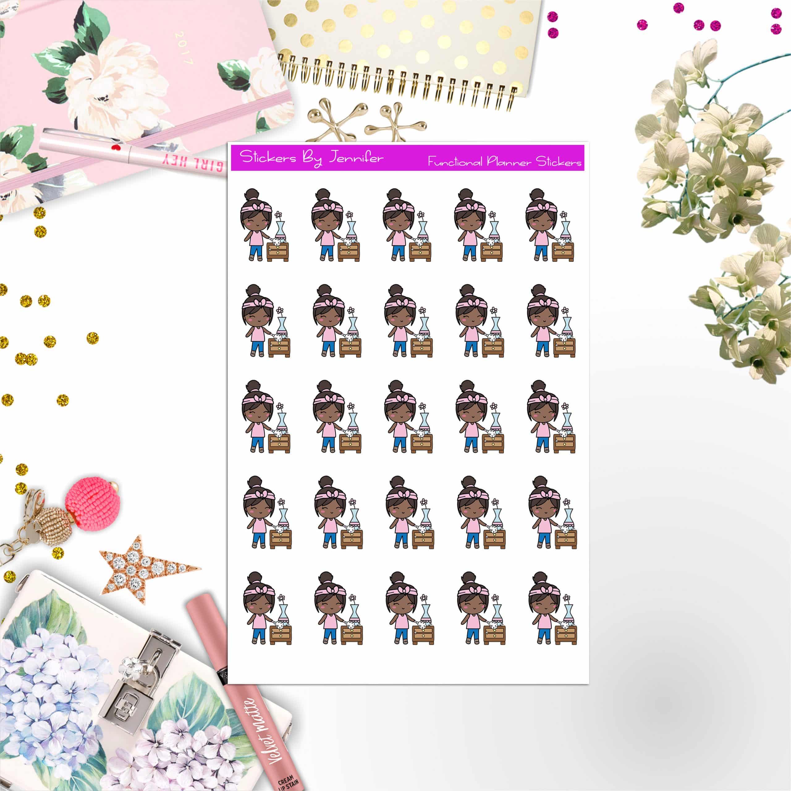 Cleaning Girl Planner Stickers, Bullet Journal Stickers, Functional Planner Stickers, Stationary Stickers