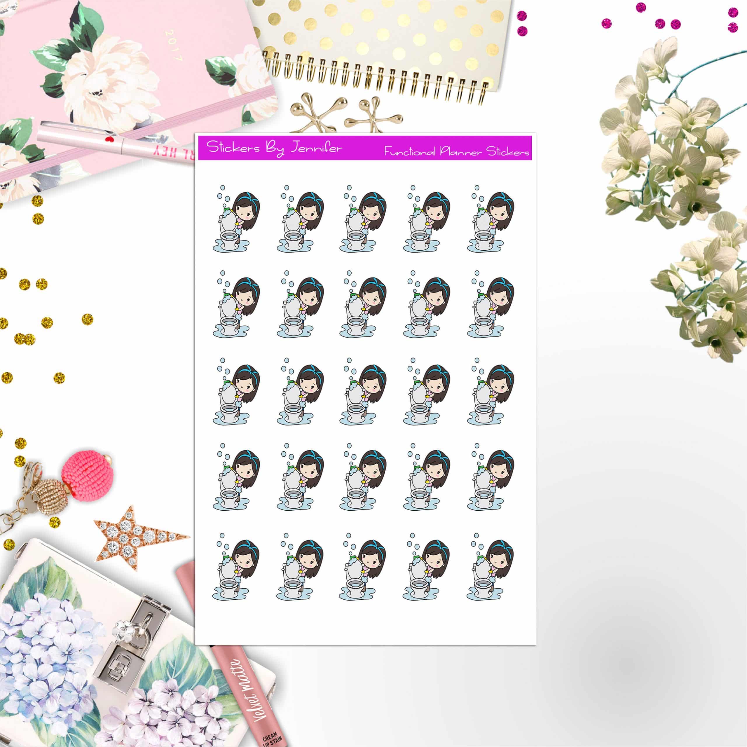 Cleaning Girl Planner Stickers, Bullet Journal Stickers, Functional Planner Stickers, Stationary Stickers