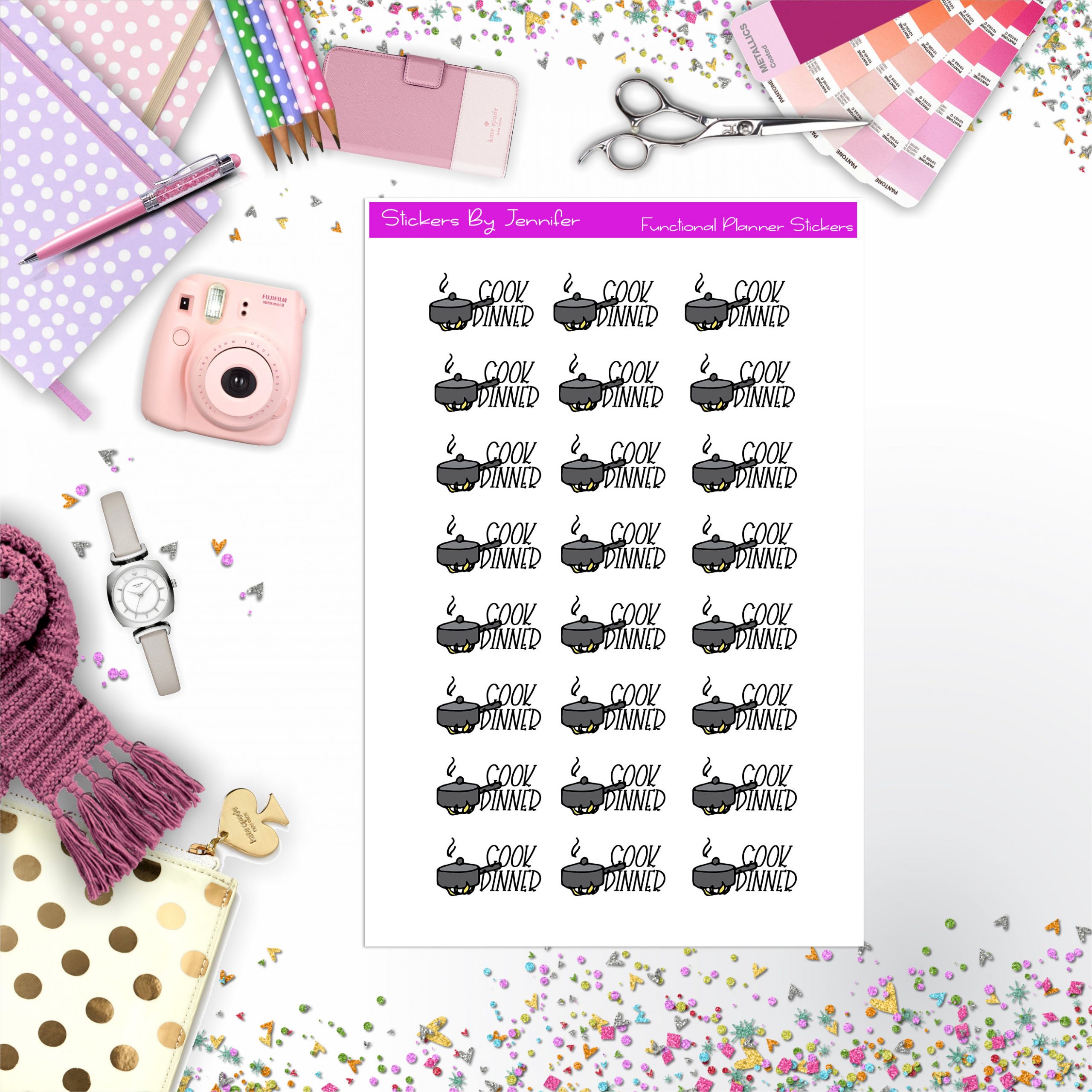 Cook Dinner Stickers, Planner Stickers, Journal Stickers, Functional Planner Stickers, Stationary Stickers