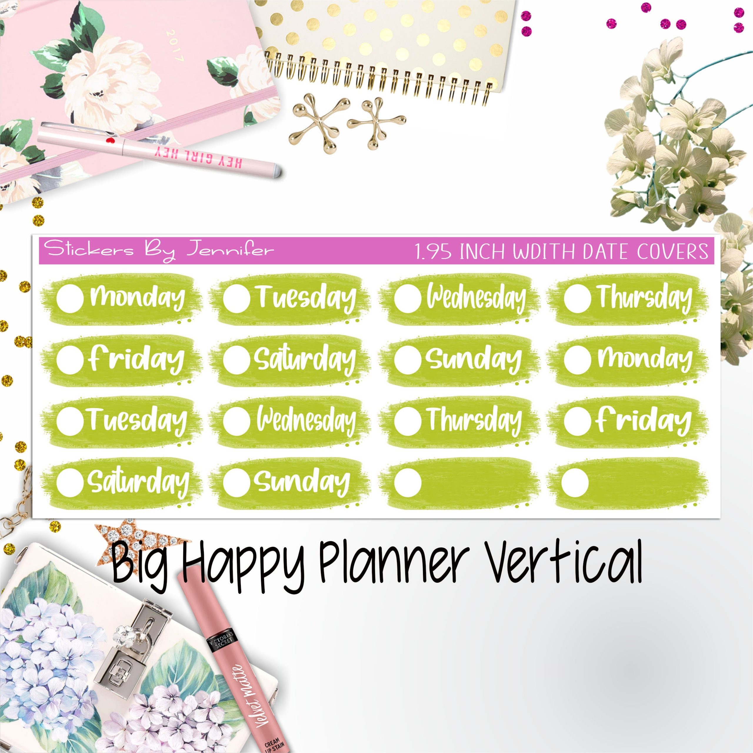 Date Covers 1.95 inch Width Quarter Box Labels 007 for Big Happy Planner Vertical Planner Stickers