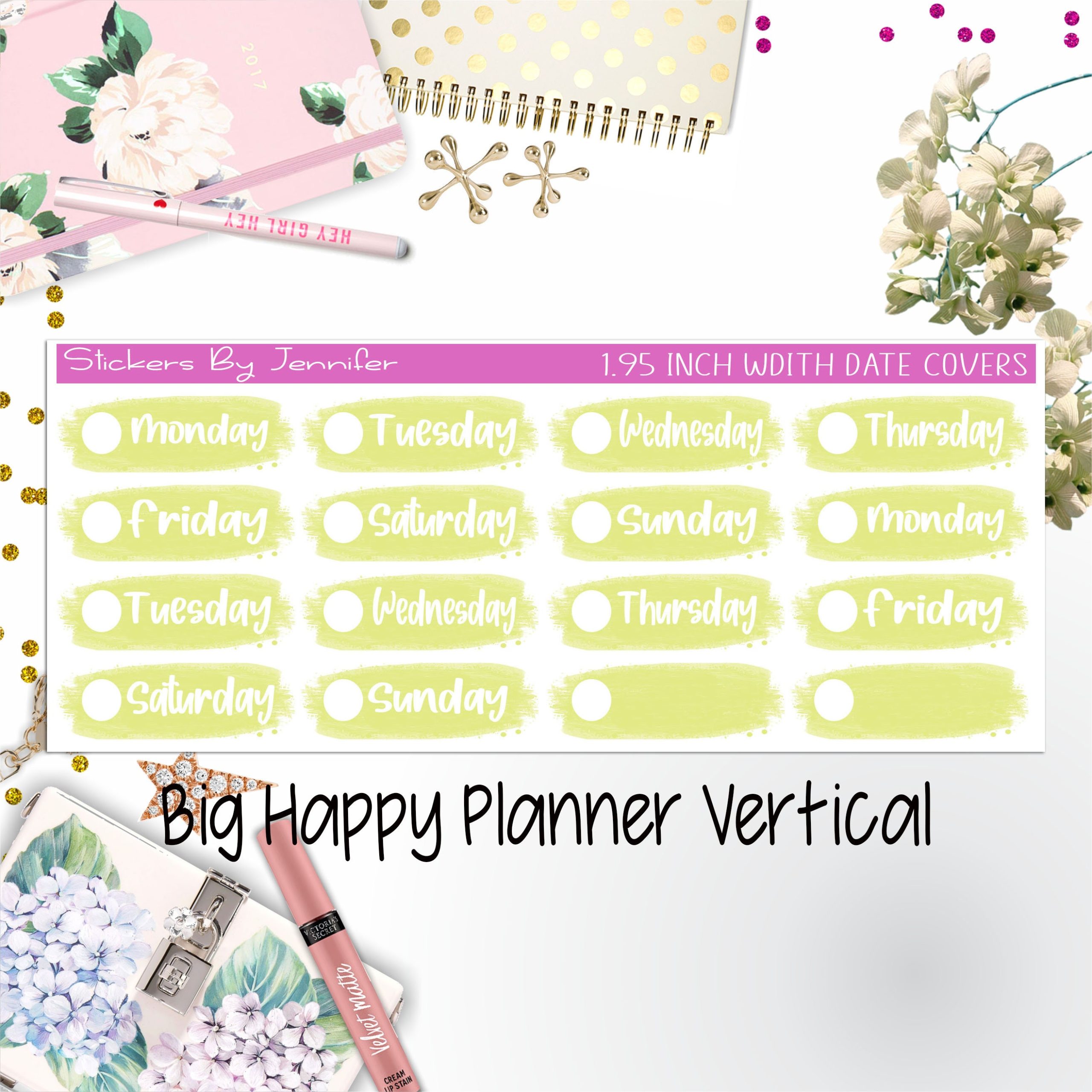 Date Covers 1.95 inch Width Quarter Box Labels 009 for Big Happy Planner Vertical Planner Stickers