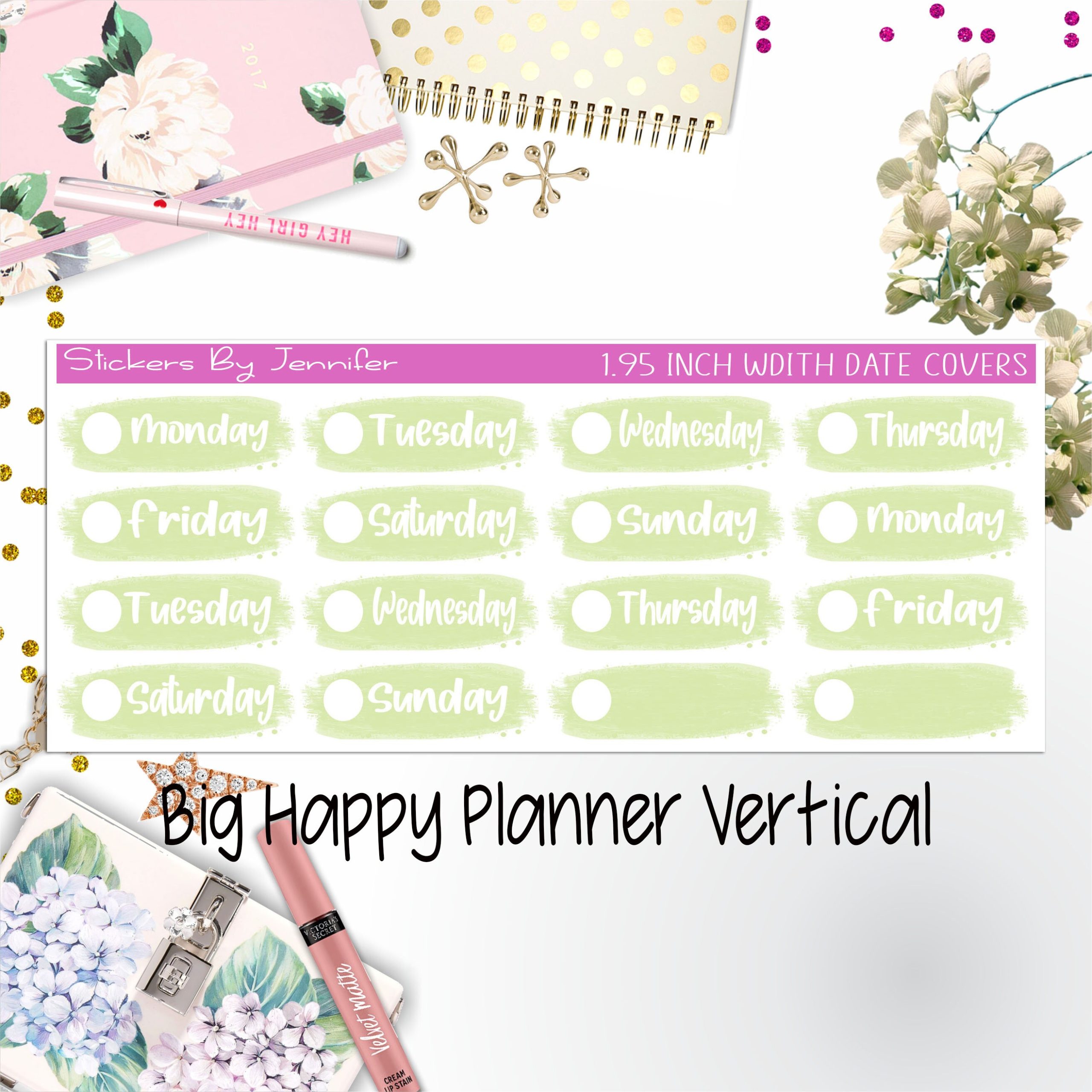 Date Covers 1.95 inch Width Quarter Box Labels 012 for Big Happy Planner Vertical Planner Stickers