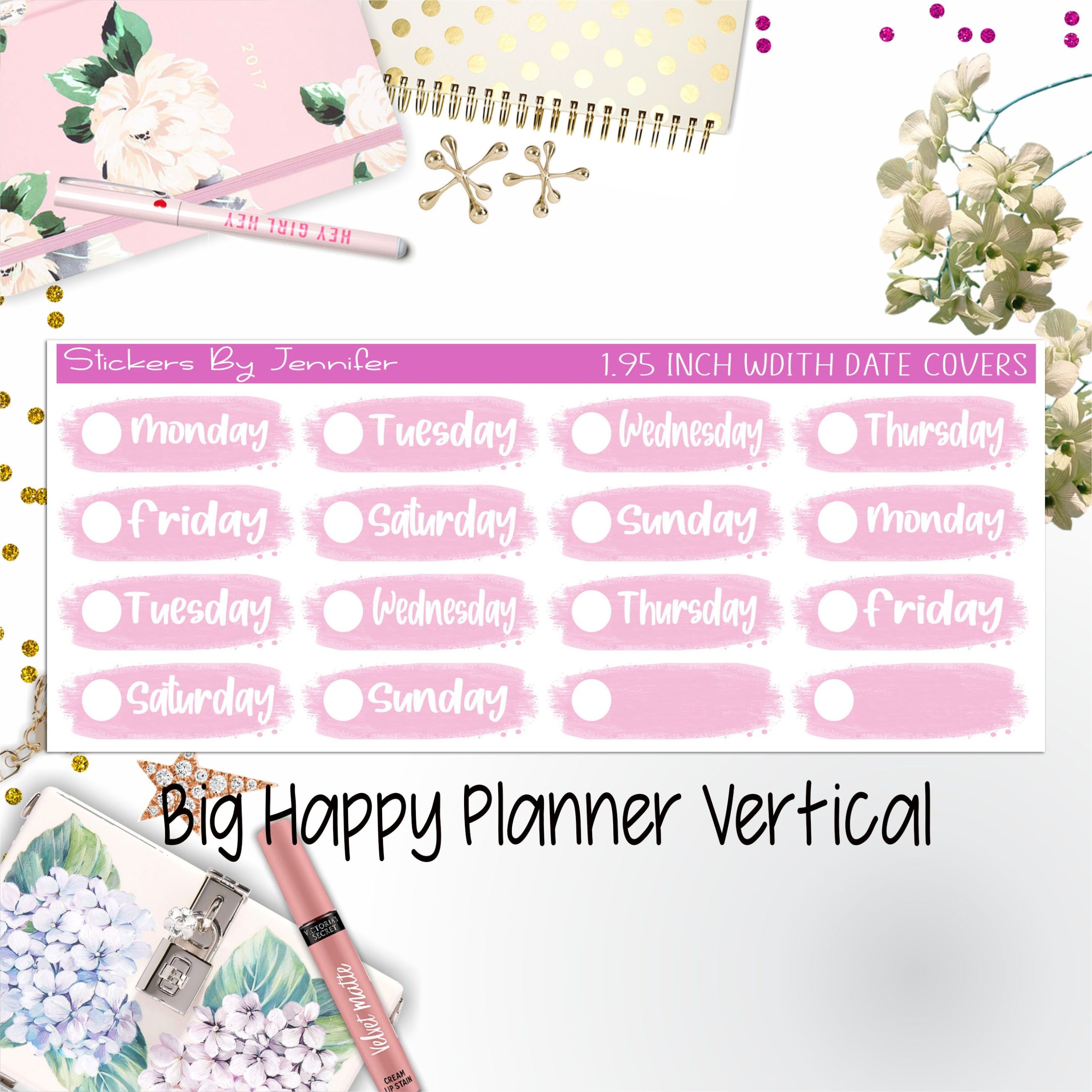 Date Covers 1.95 inch Width Quarter Box Labels 056 for Big Happy Planner Vertical Planner Stickers
