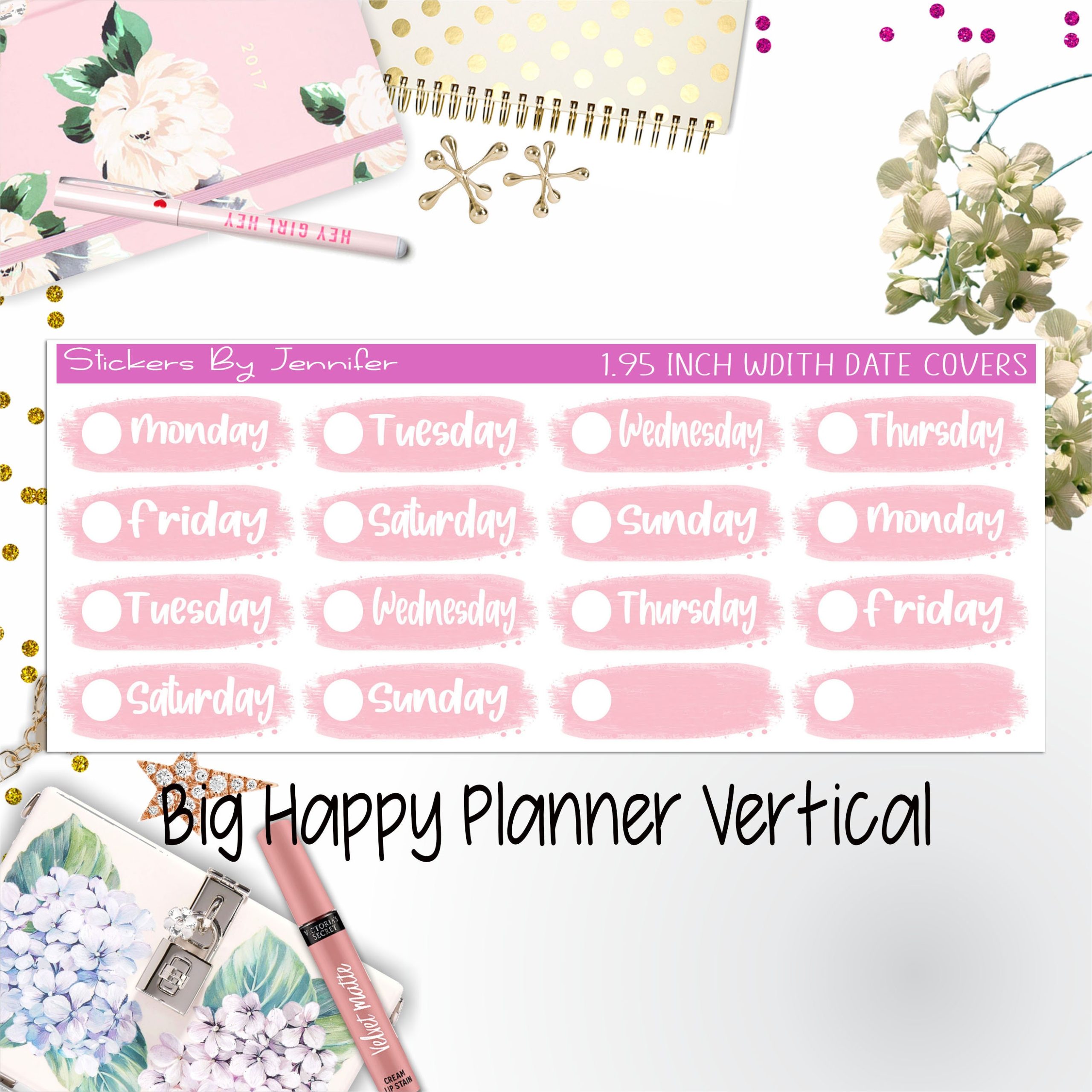 Date Covers 1.95 inch Width Quarter Box Labels 067 for Big Happy Planner Vertical Planner Stickers