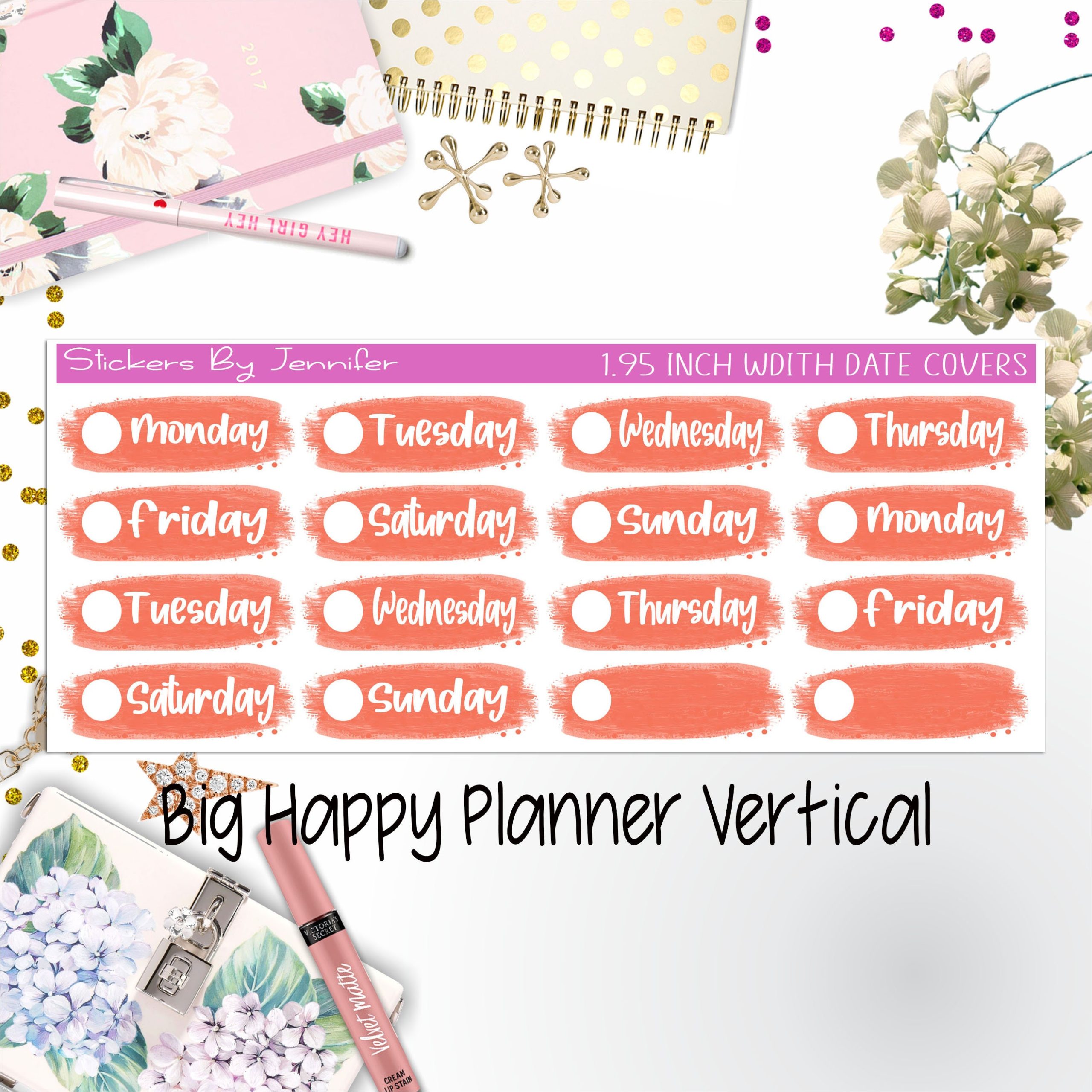 Date Covers 1.95 inch Width Quarter Box Labels 076 for Big Happy Planner Vertical Planner Stickers