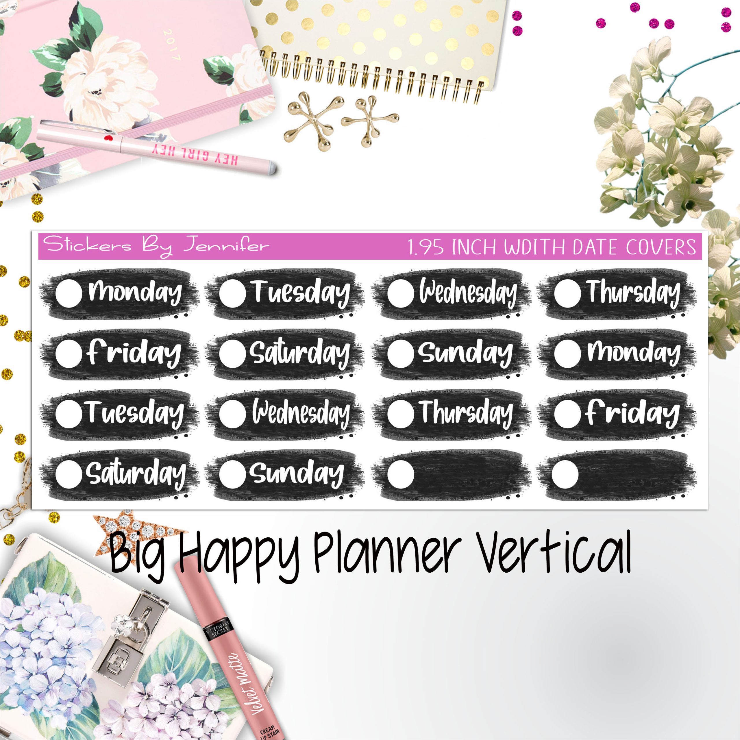 Date Covers 1.95 inch Width Quarter Box Labels 100 for Big Happy Planner Vertical Planner Stickers