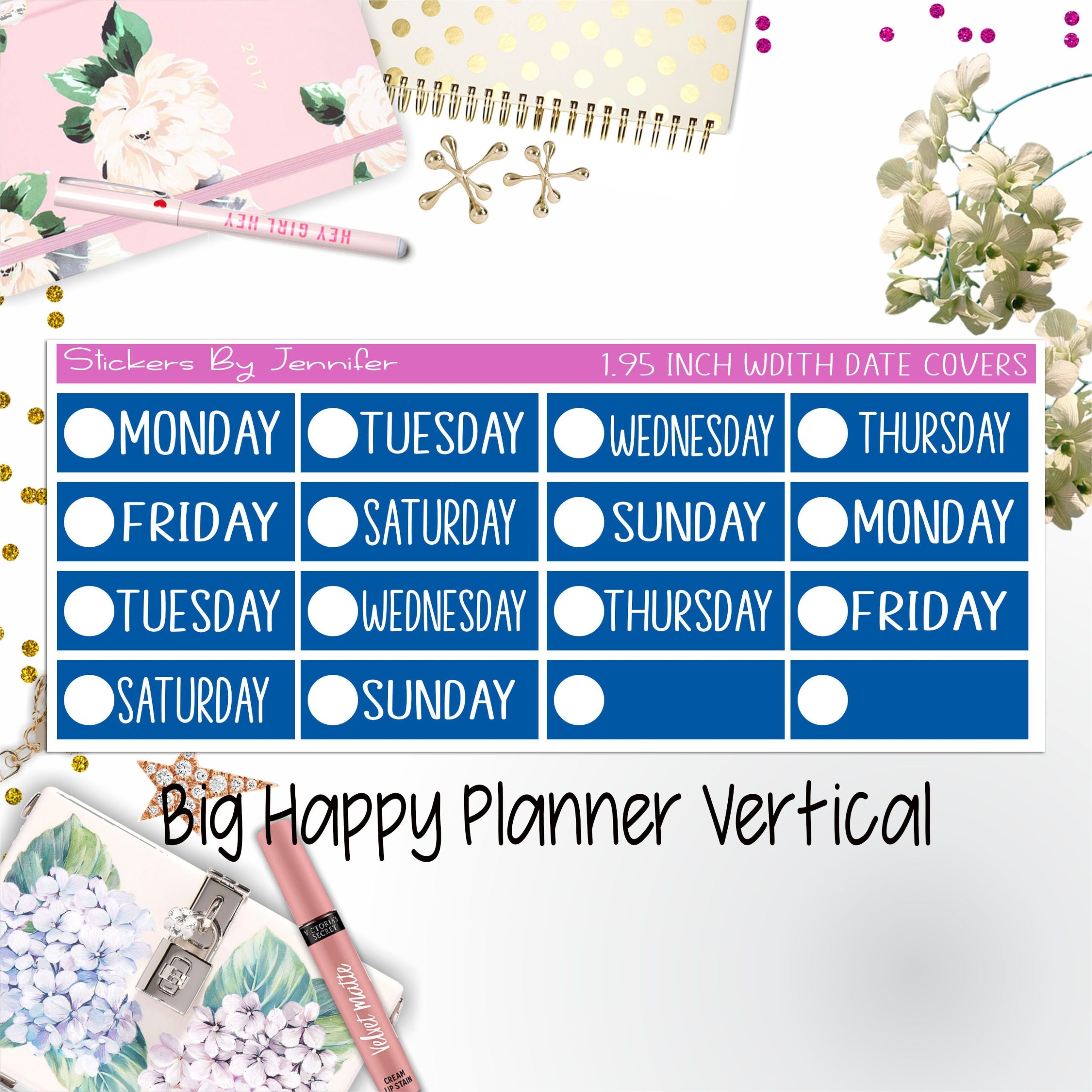 Date Covers 1.95 inch Width Quarter Box Labels 137 for Big Happy Planner Vertical Planner Stickers