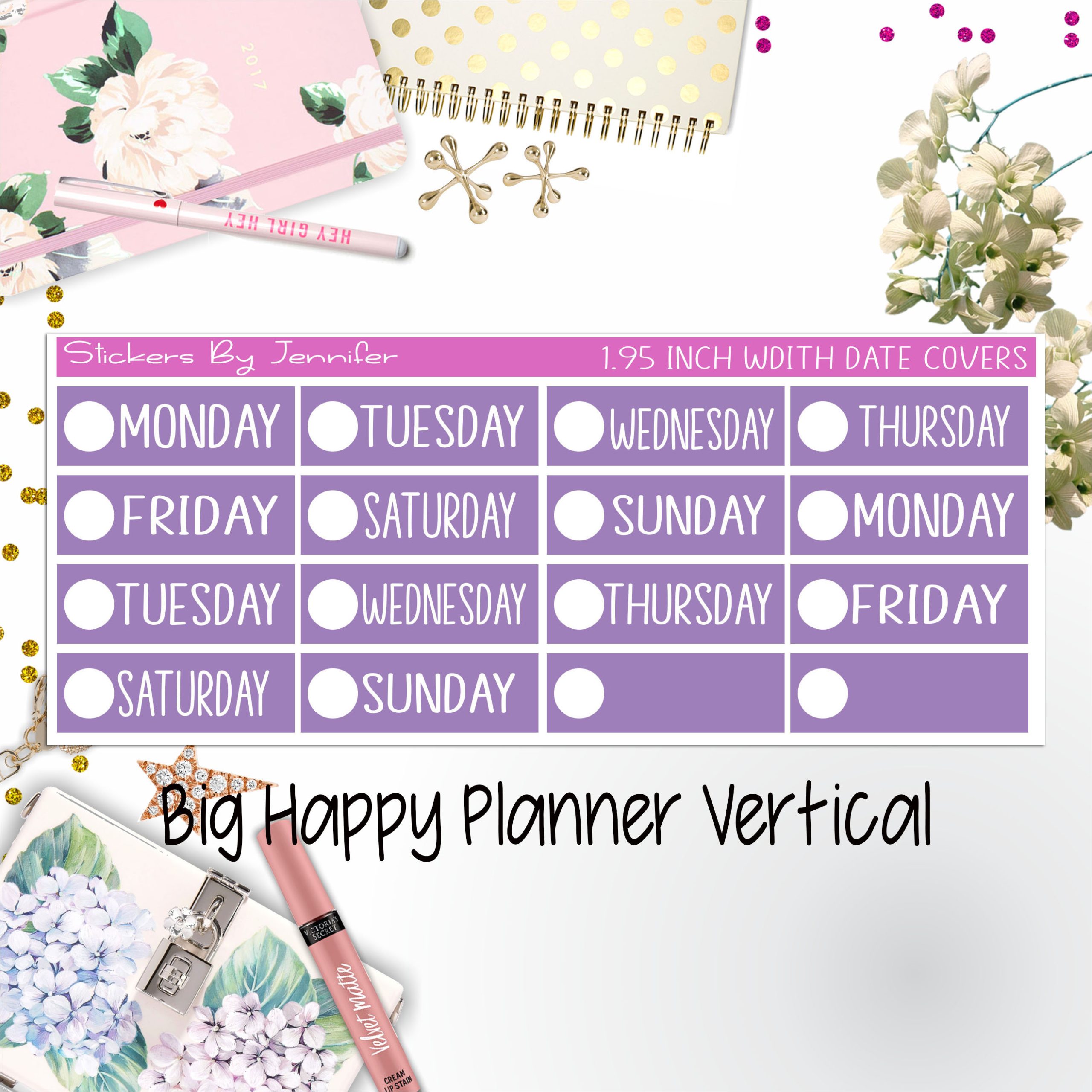 Date Covers 1.95 inch Width Quarter Box Labels 147 for Big Happy Planner Vertical Planner Stickers