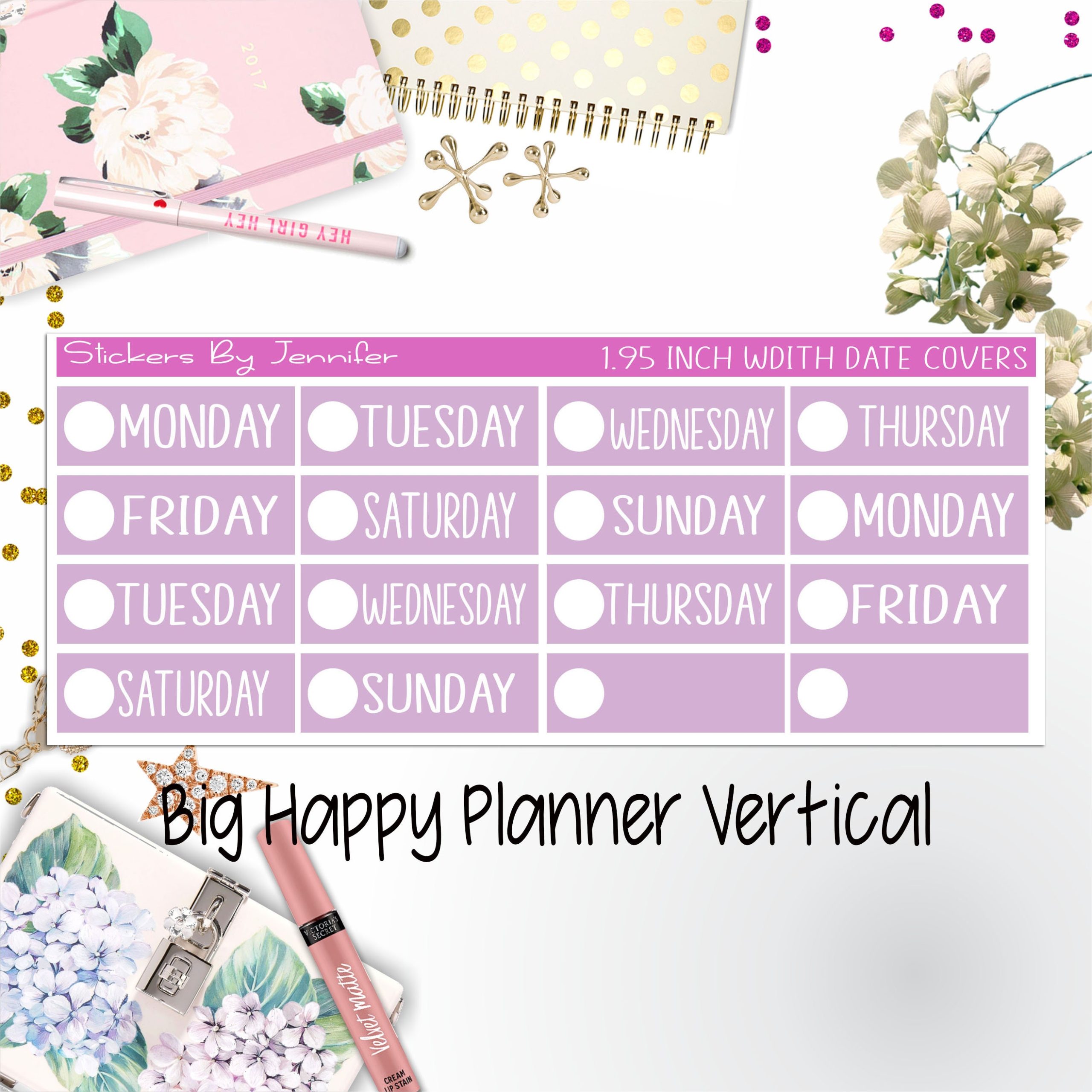 Date Covers 1.95 inch Width Quarter Box Labels 154 for Big Happy Planner Vertical Planner Stickers
