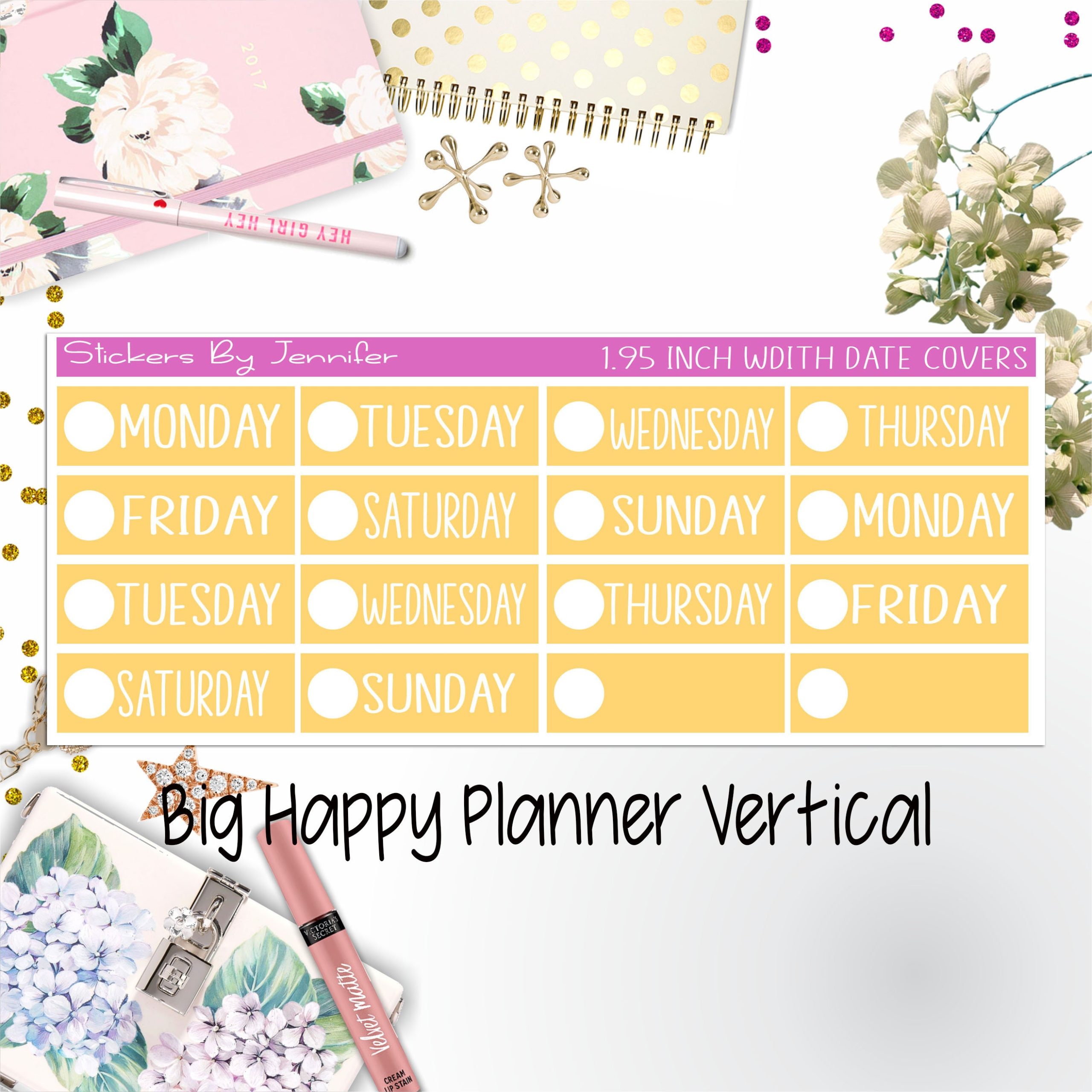 Date Covers 1.95 inch Width Quarter Box Labels 179 for Big Happy Planner Vertical Planner Stickers