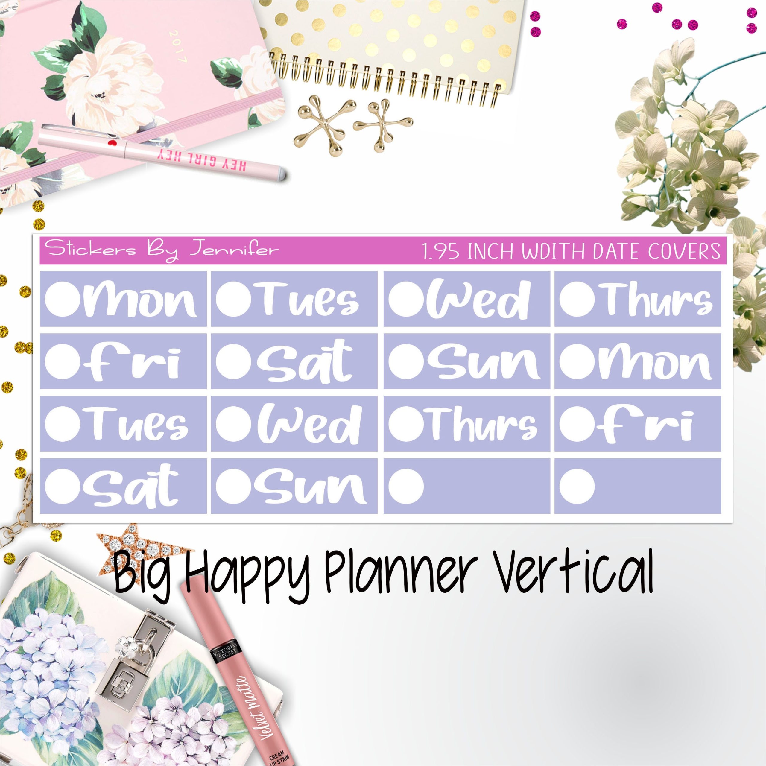 Date Covers 1.95 inch Width Quarter Box Labels 244 for Big Happy Planner Vertical Planner Stickers