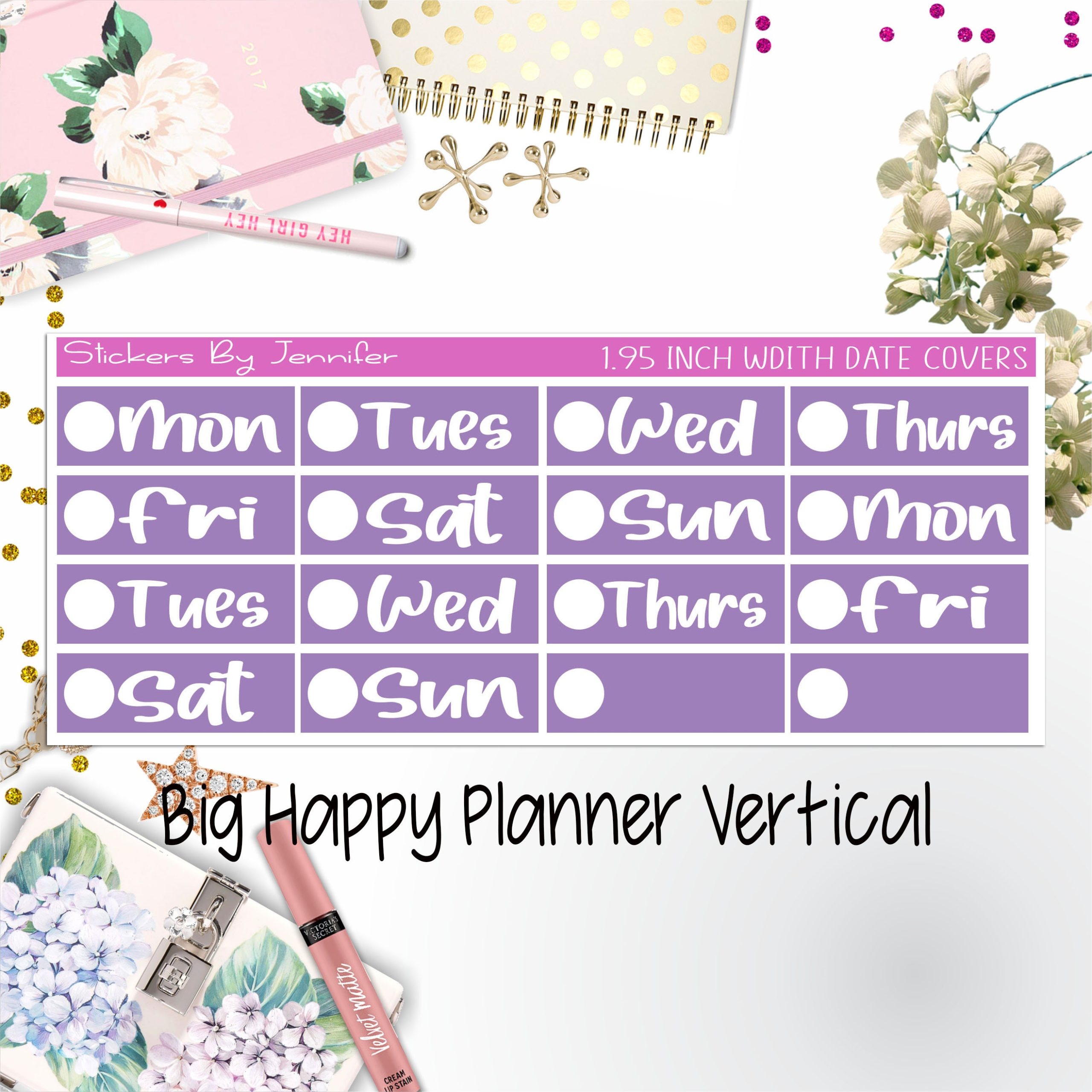 Date Covers 1.95 inch Width Quarter Box Labels 247 for Big Happy Planner Vertical Planner Stickers