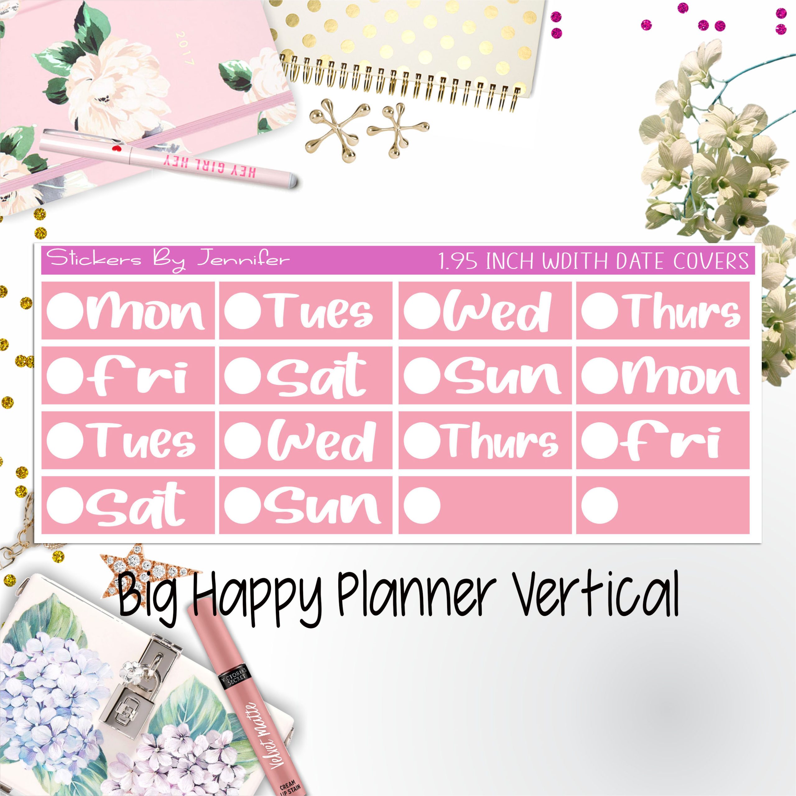 Date Covers 1.95 inch Width Quarter Box Labels 266 for Big Happy Planner Vertical Planner Stickers