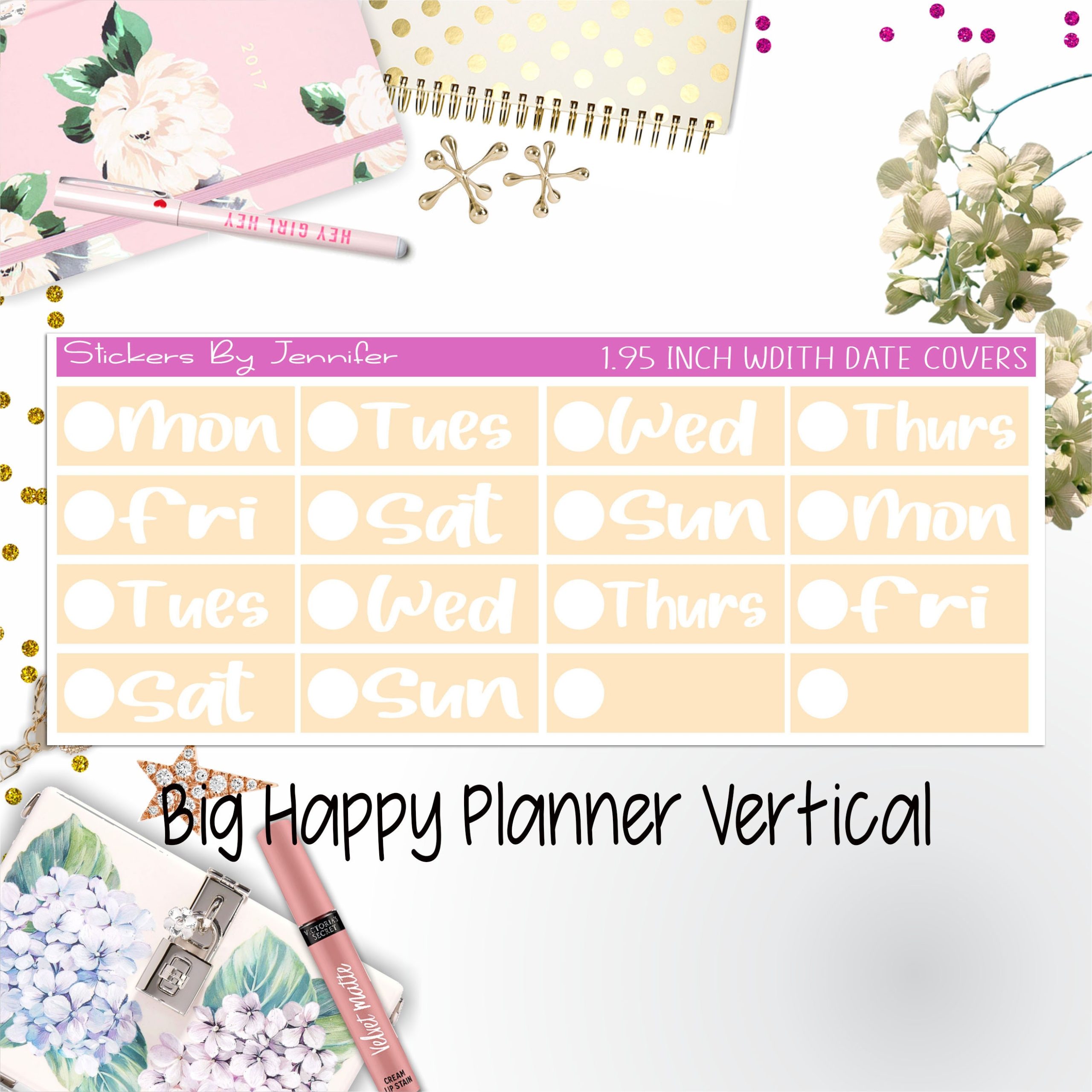 Date Covers 1.95 inch Width Quarter Box Labels 287 for Big Happy Planner Vertical Planner Stickers