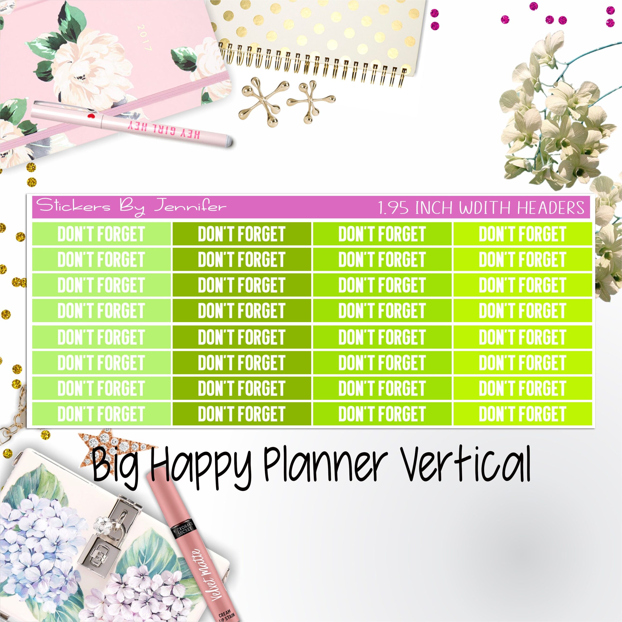Don’t Forget Headers 1.95 inch Width 085 for Big Happy Planner Vertical Planner Stickers