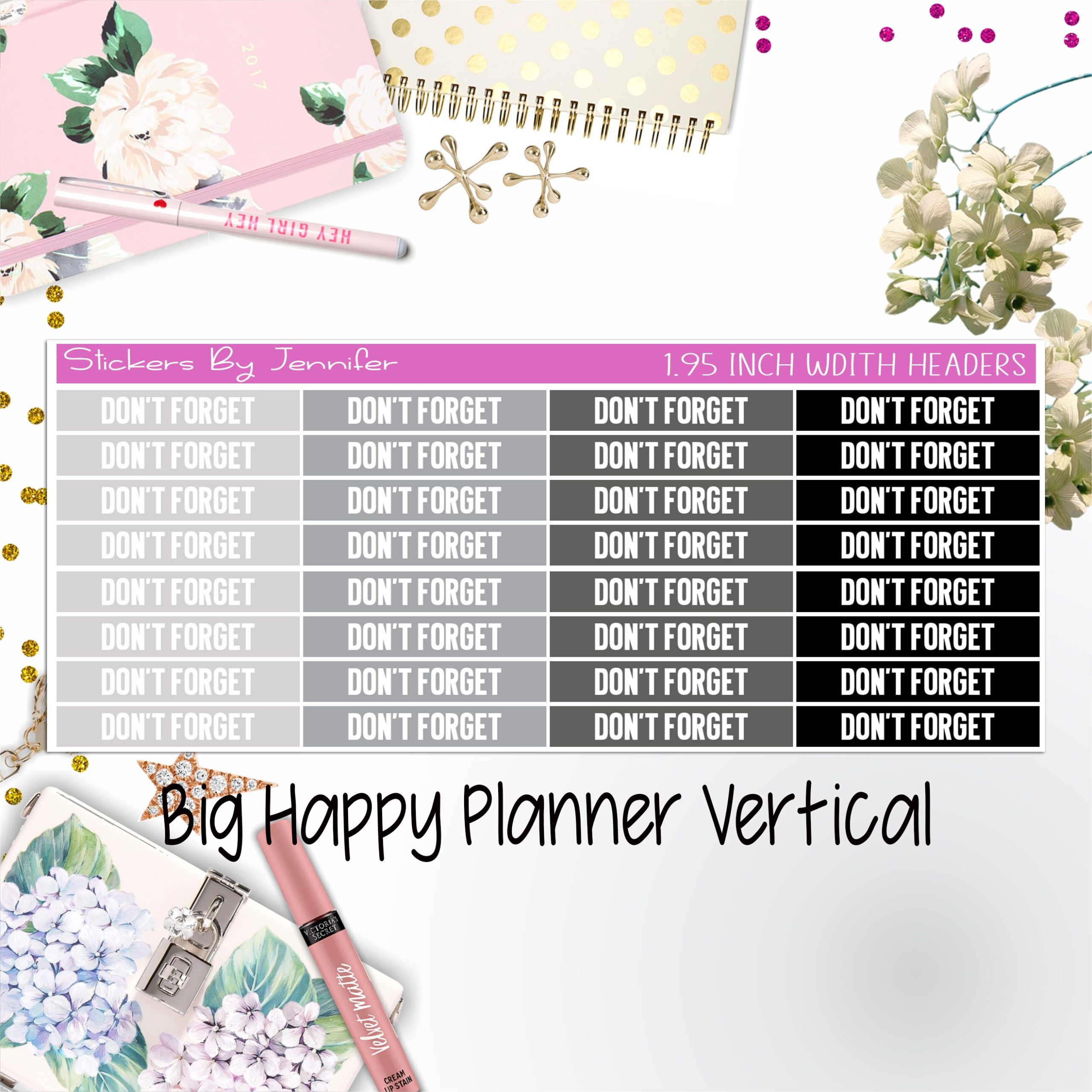 Don’t Forget Headers 1.95 inch Width 100 for Big Happy Planner Vertical Planner Stickers