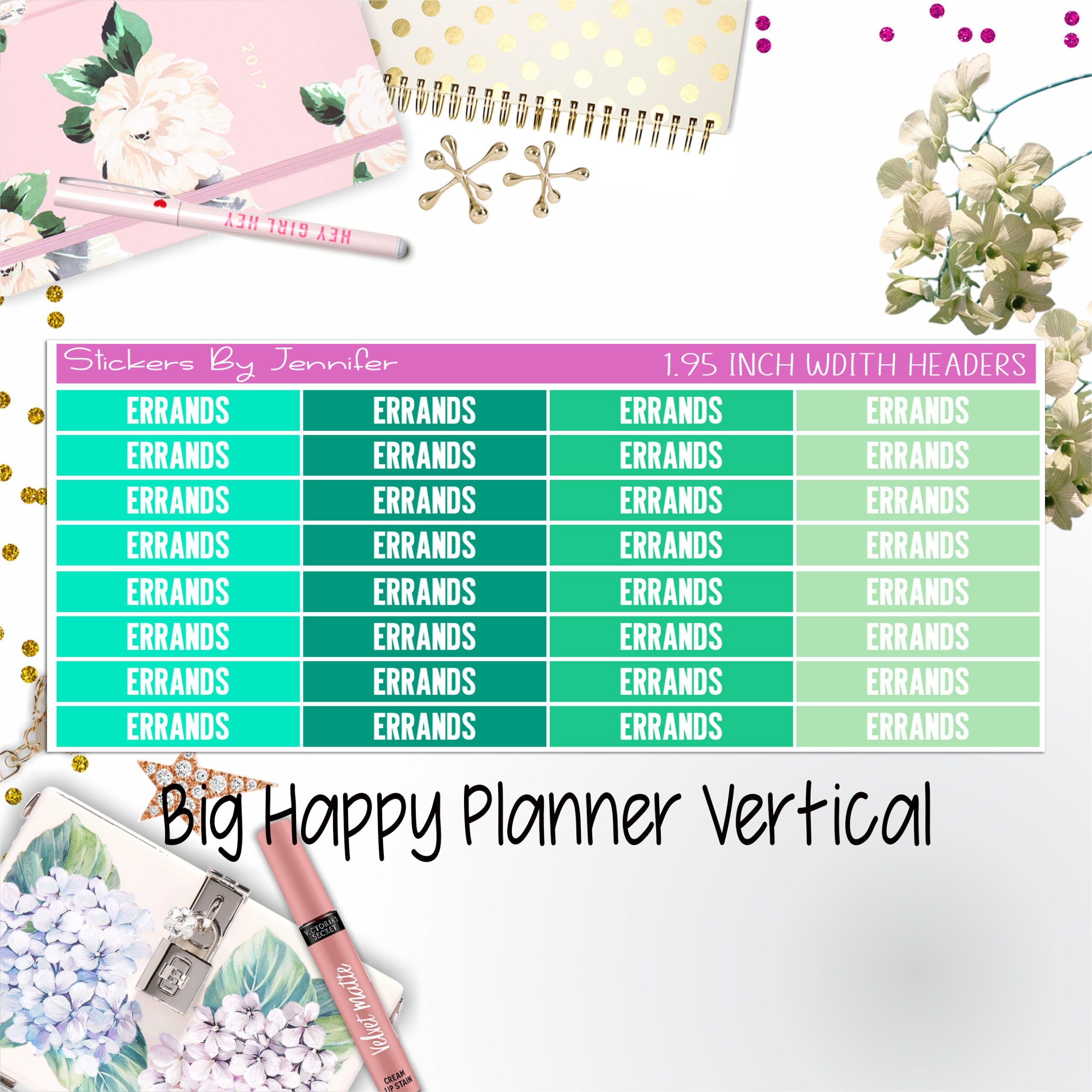 Errands Headers 1.95 inch Width 107 for Big Happy Planner Vertical Planner Stickers