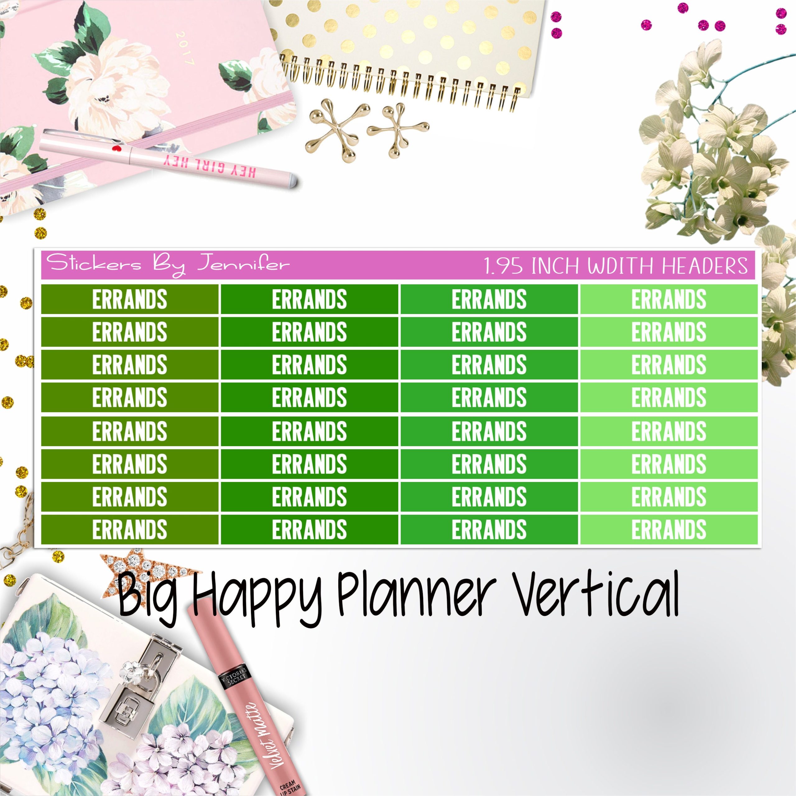 Errands Headers 1.95 inch Width 109 for Big Happy Planner Vertical Planner Stickers