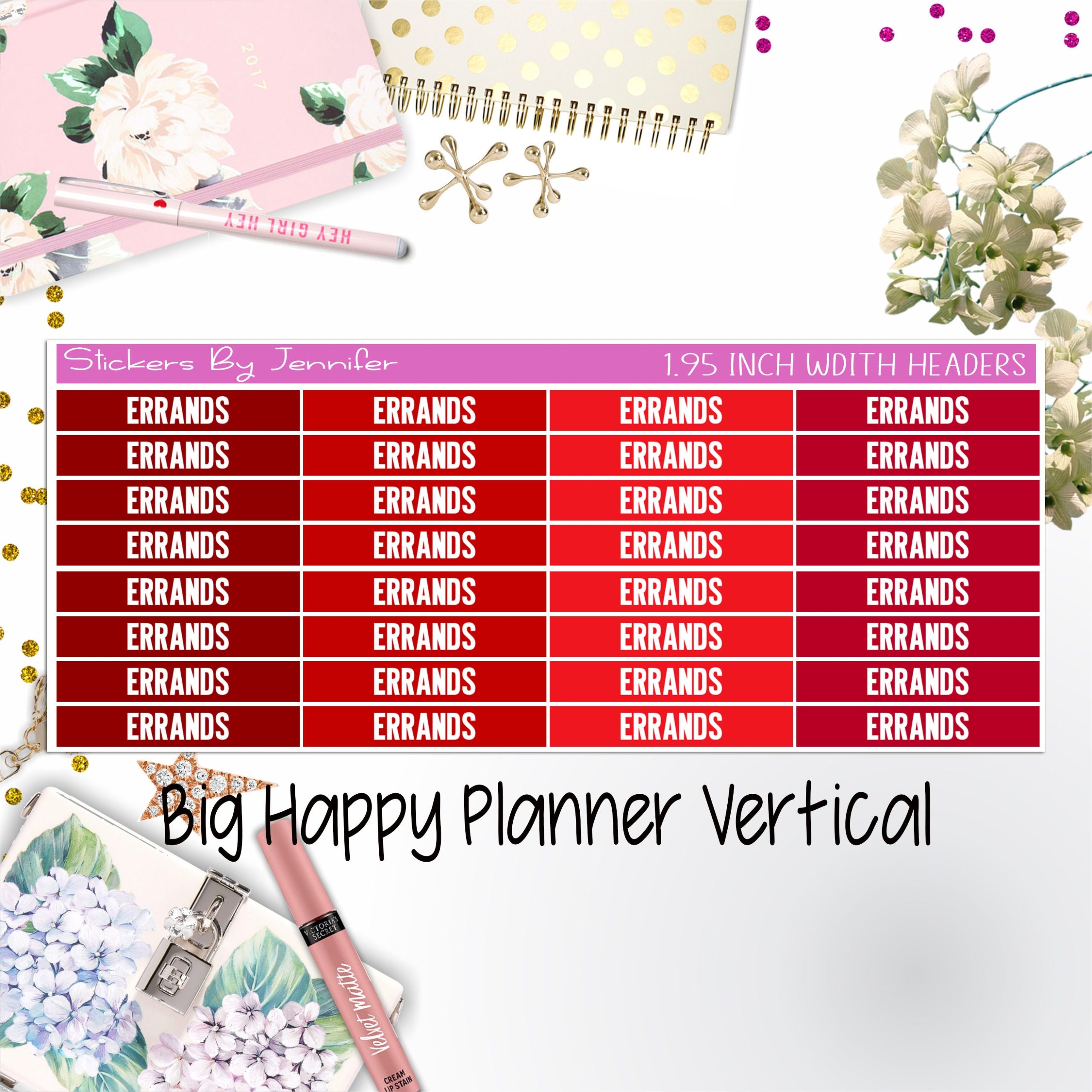 Errands Headers 1.95 inch Width 114 for Big Happy Planner Vertical Planner Stickers