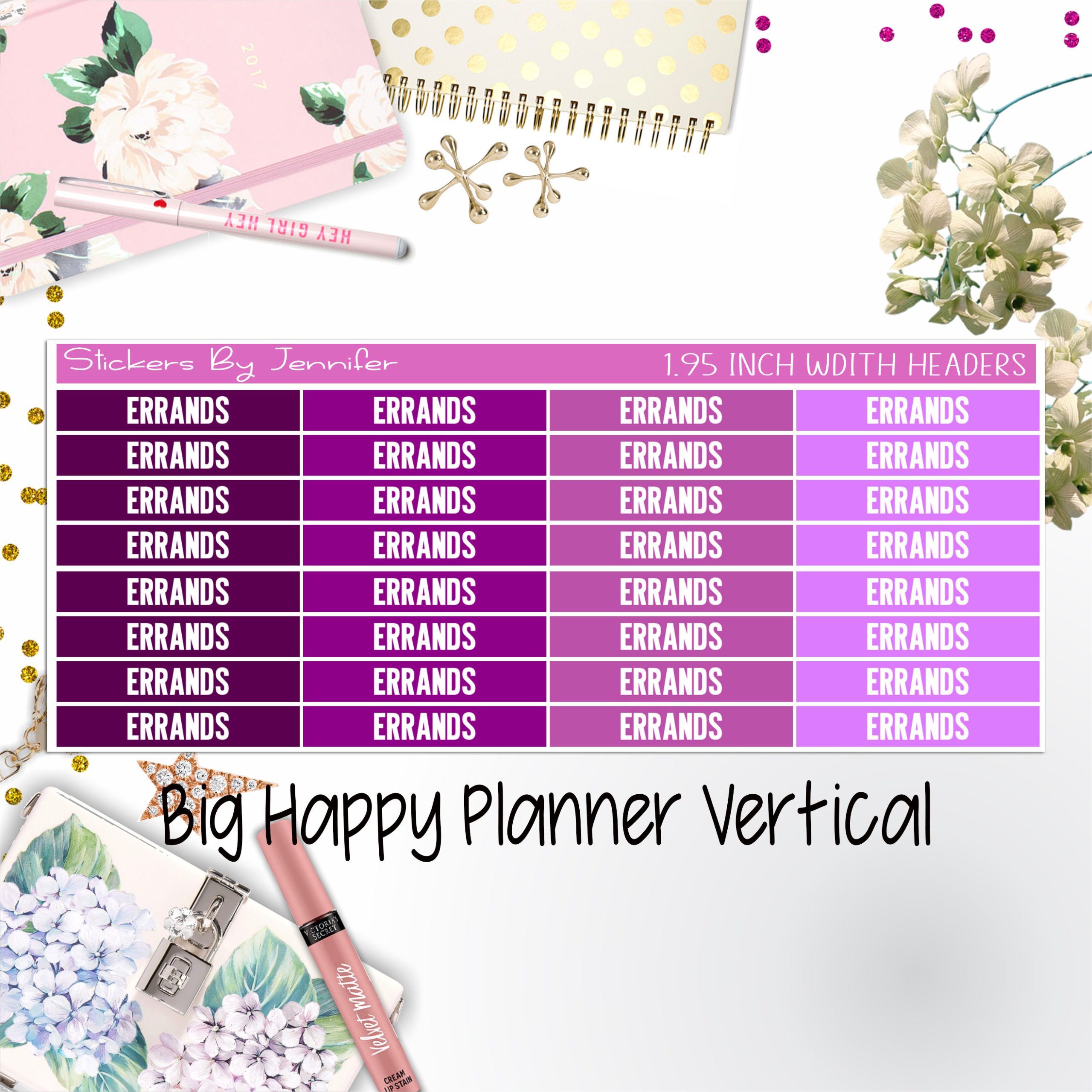Errands Headers 1.95 inch Width 118 for Big Happy Planner Vertical Planner Stickers