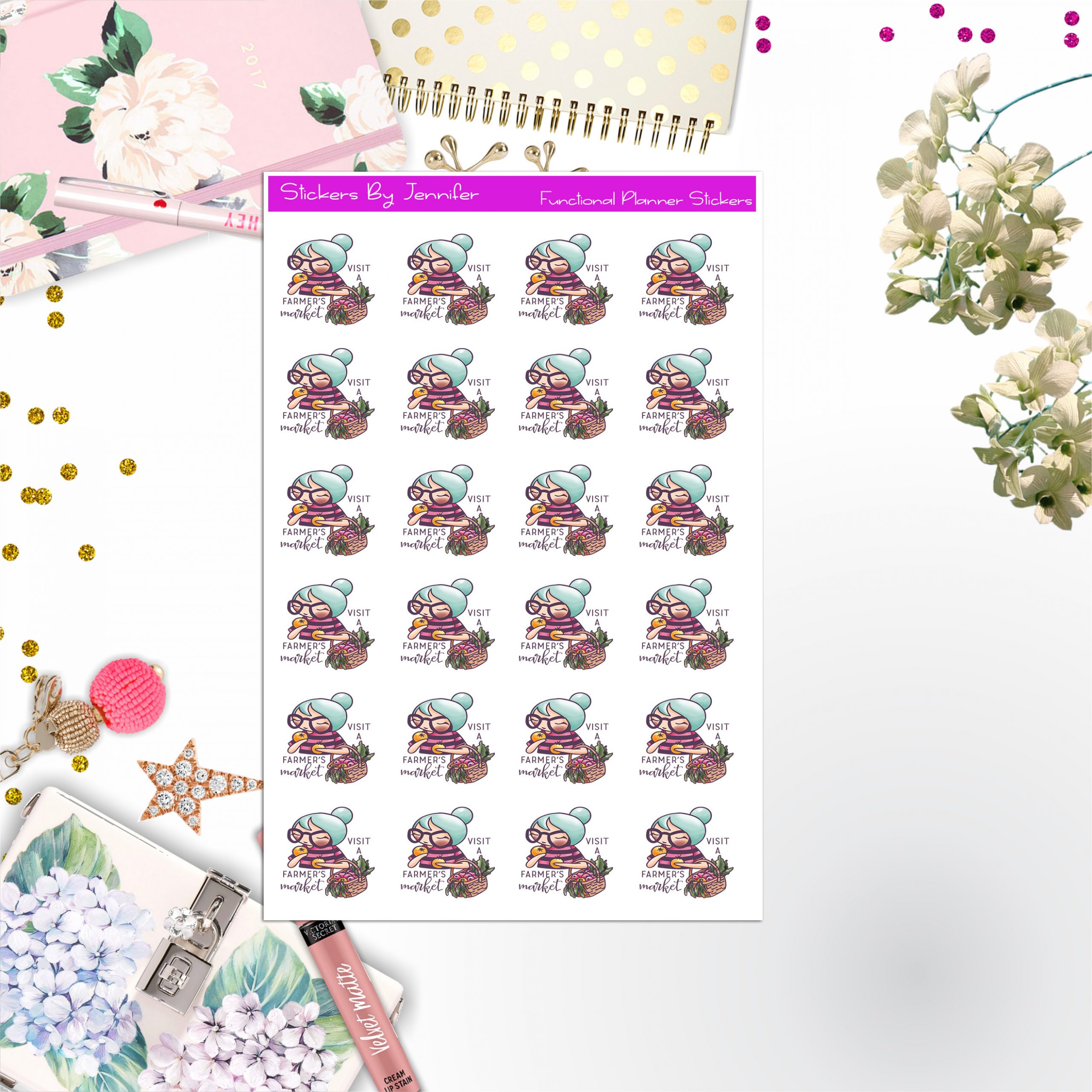 Farmer’s Market Character Girl Stickers, Planner Stickers, Journal Stickers, Functional Planner Stickers, Stationary Stickers