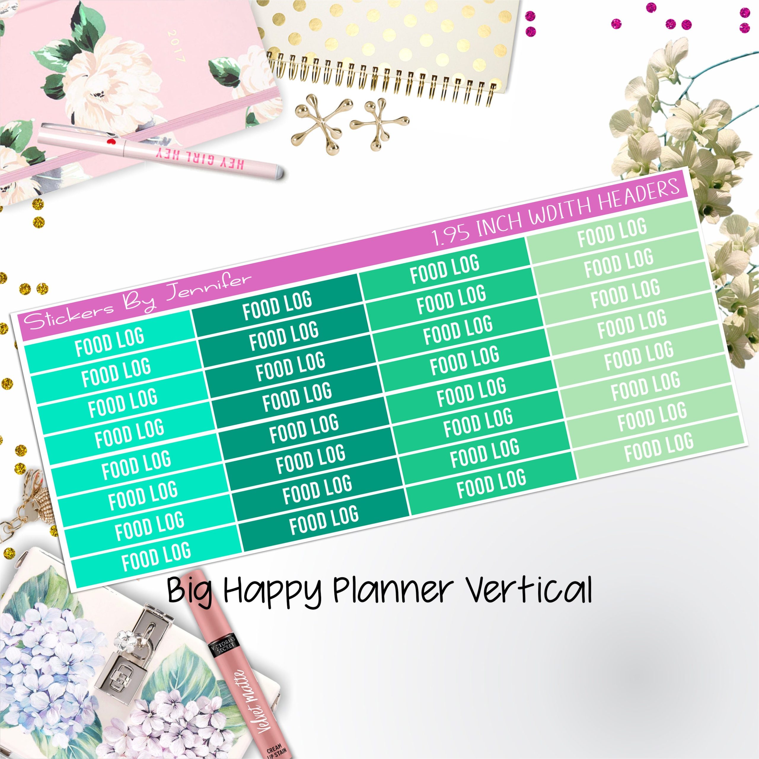 Food Log Headers 1.95 inch Width 759 for Big Happy Planner Vertical Planner Stickers
