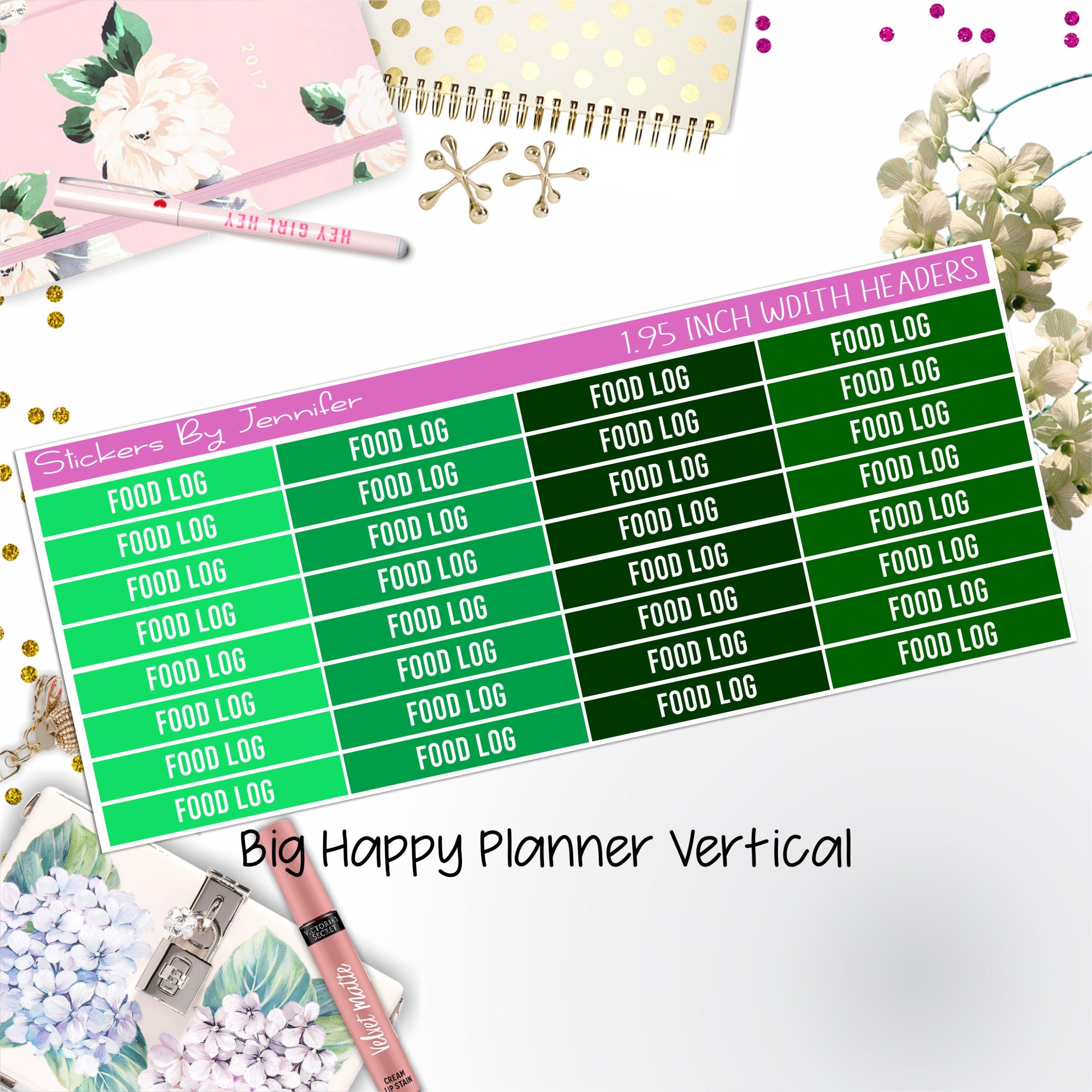 Food Log Headers 1.95 inch Width 760 for Big Happy Planner Vertical Planner Stickers