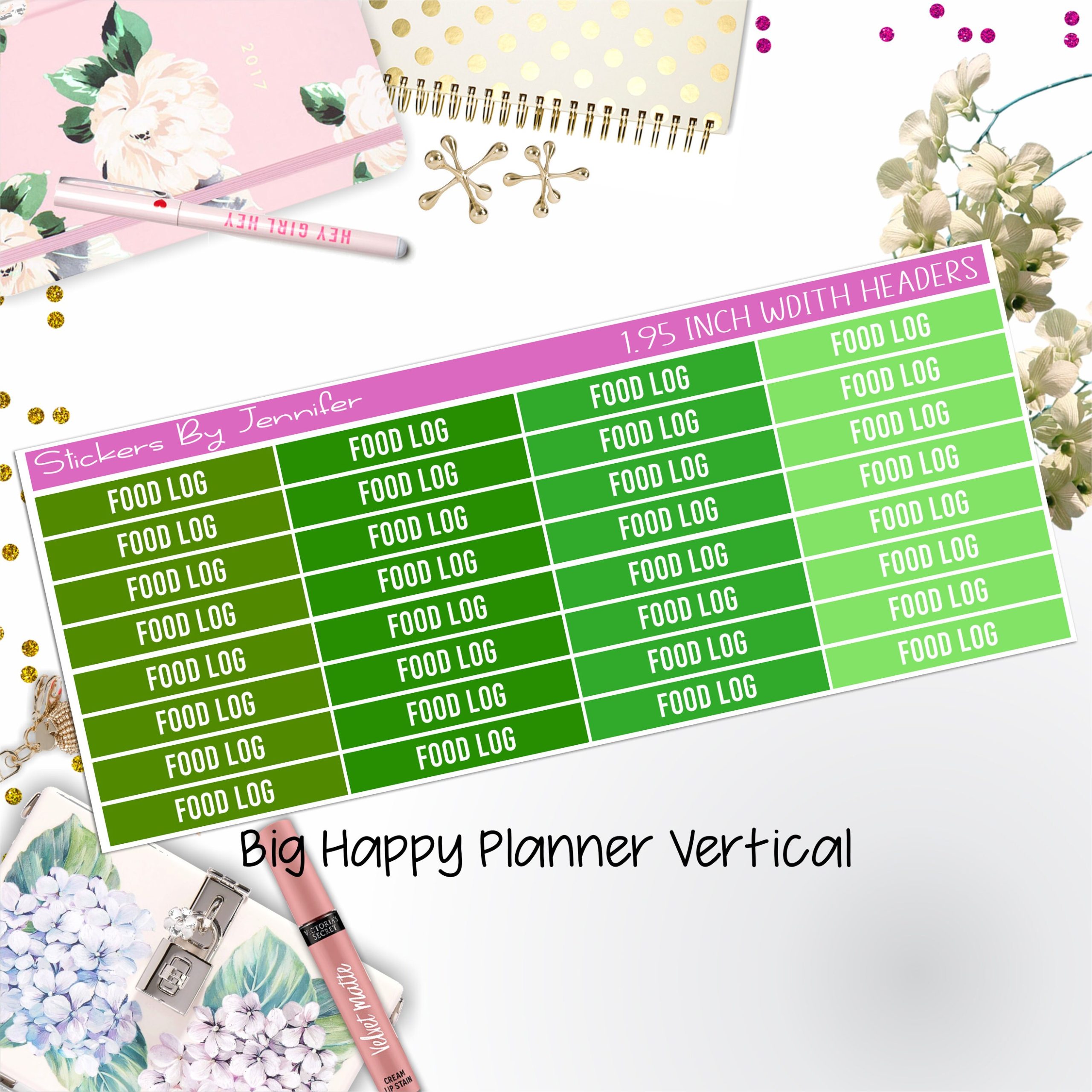 Food Log Headers 1.95 inch Width 761 for Big Happy Planner Vertical Planner Stickers