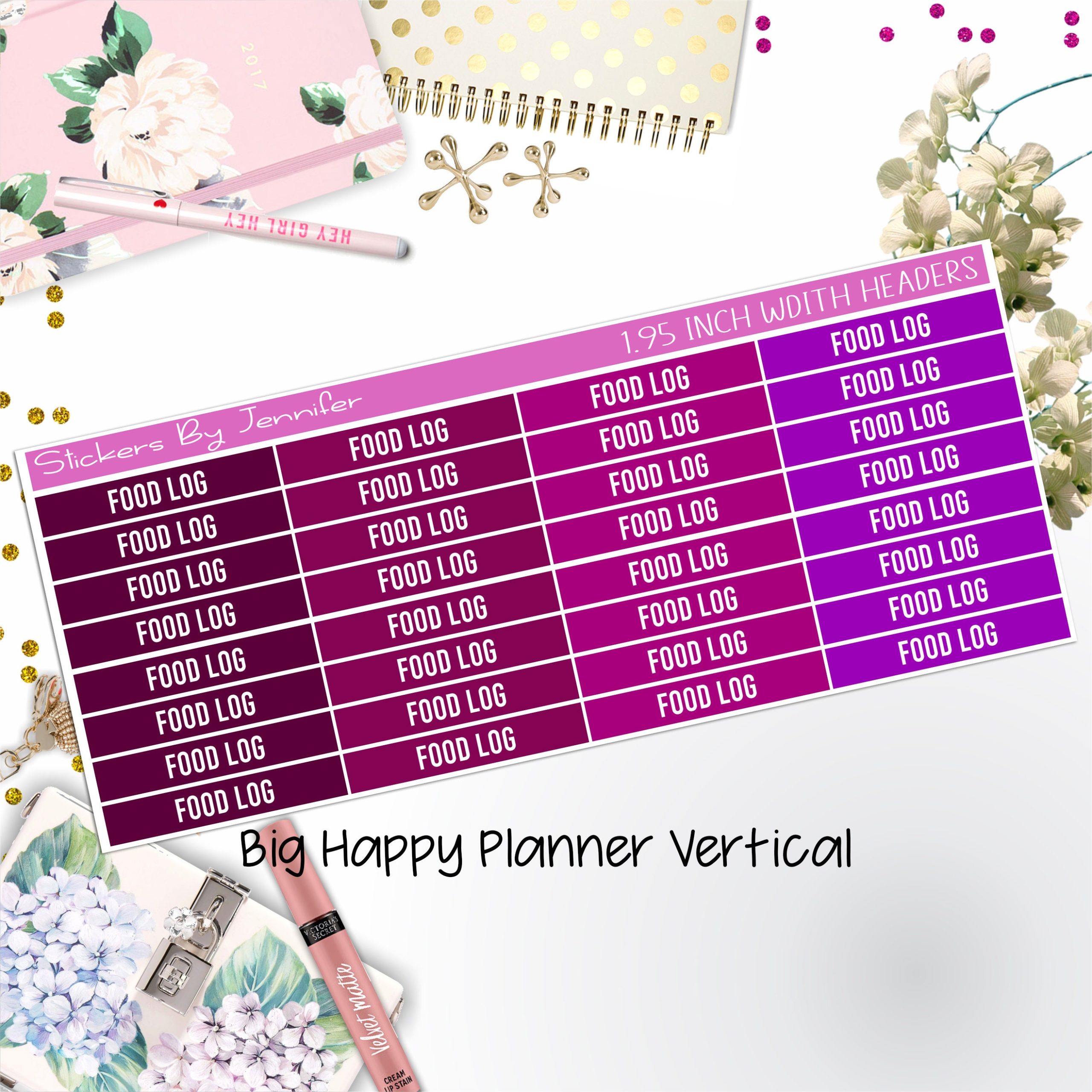 Food Log Headers 1.95 inch Width 768 for Big Happy Planner Vertical Planner Stickers
