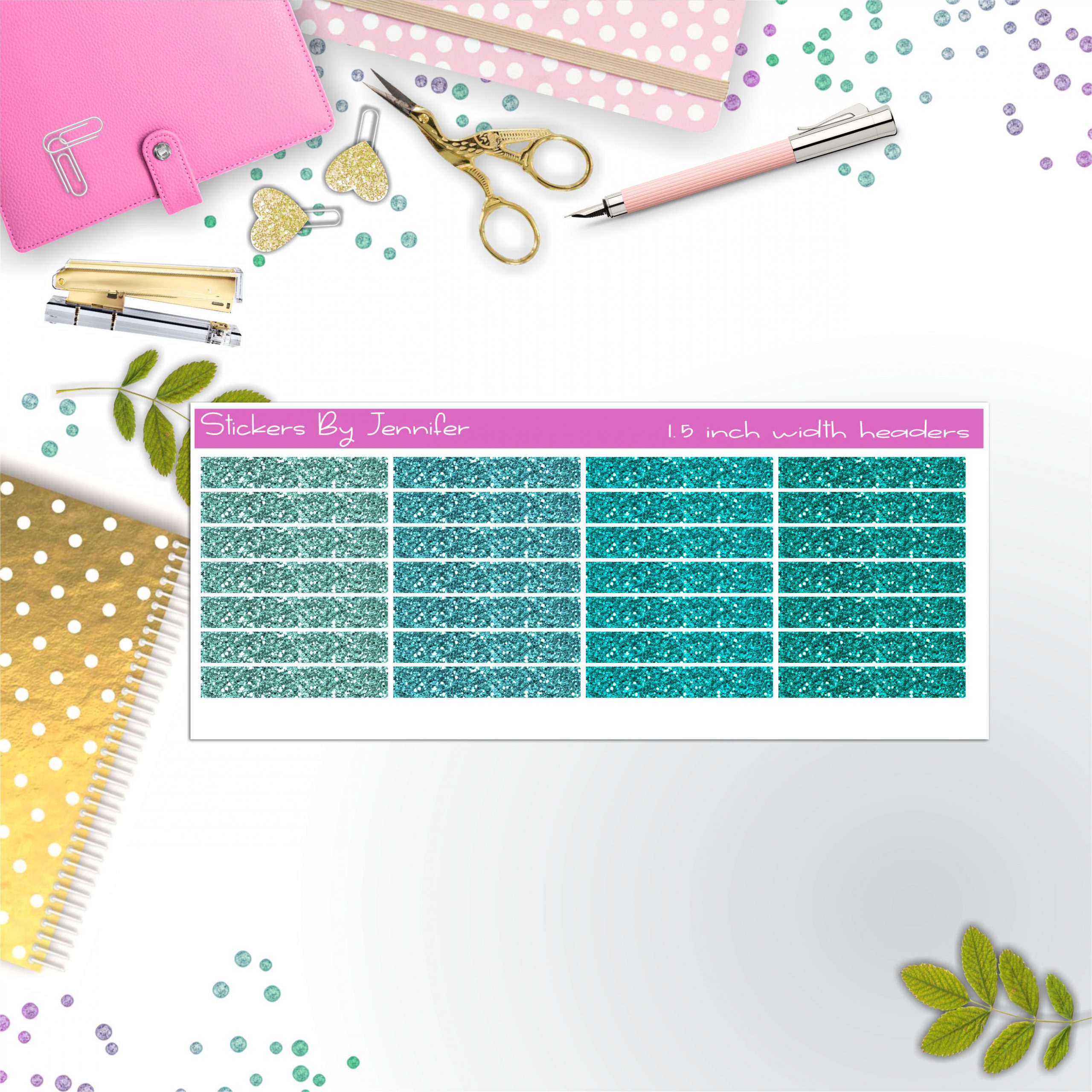 Glitter (Faux) Planner Headers, Planner Stickers, Journal Stickers, Functional Planner Stickers, Stationary Stickers