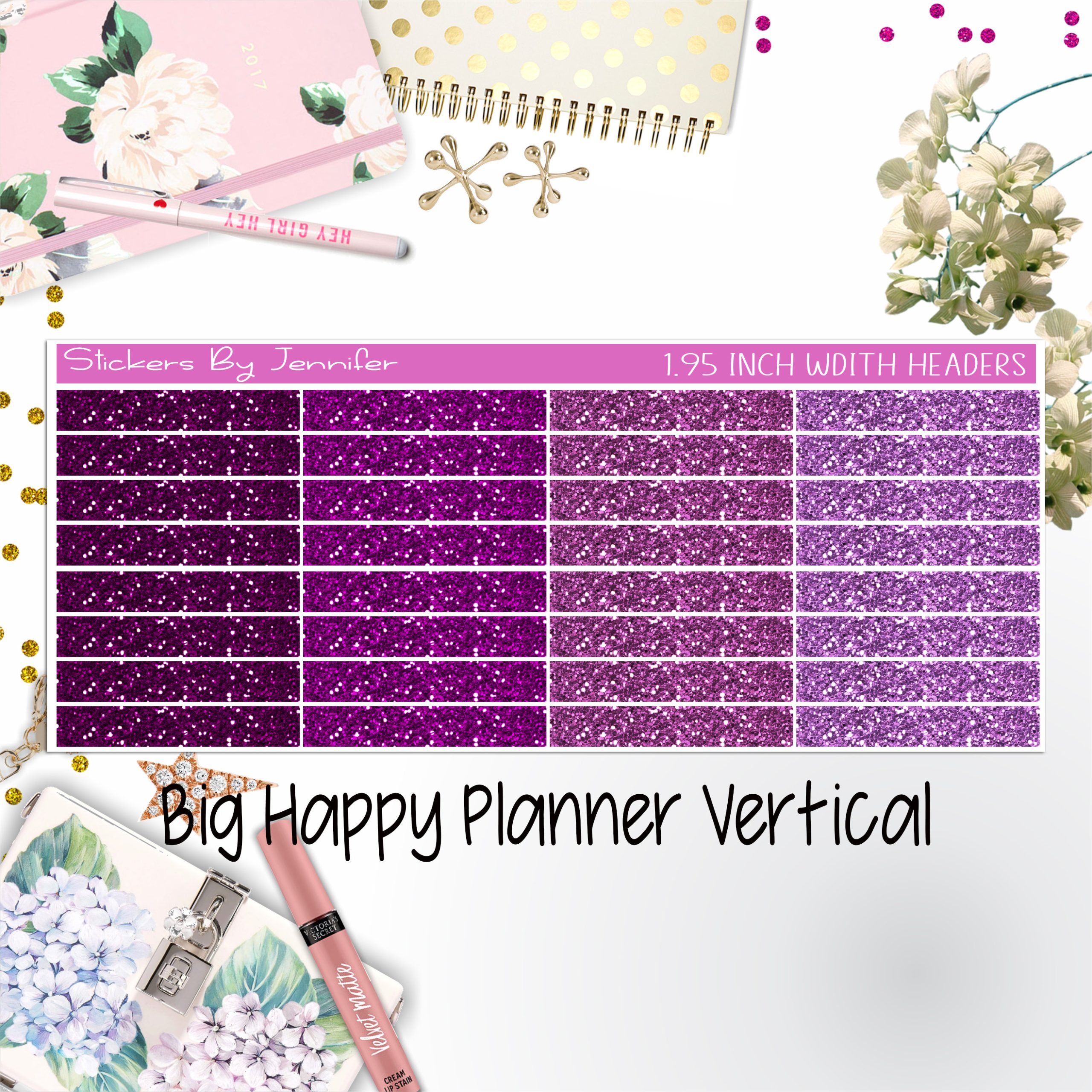 Glitter Headers 1.95 inch Width 018 for Big Happy Planner Vertical Planner Stickers