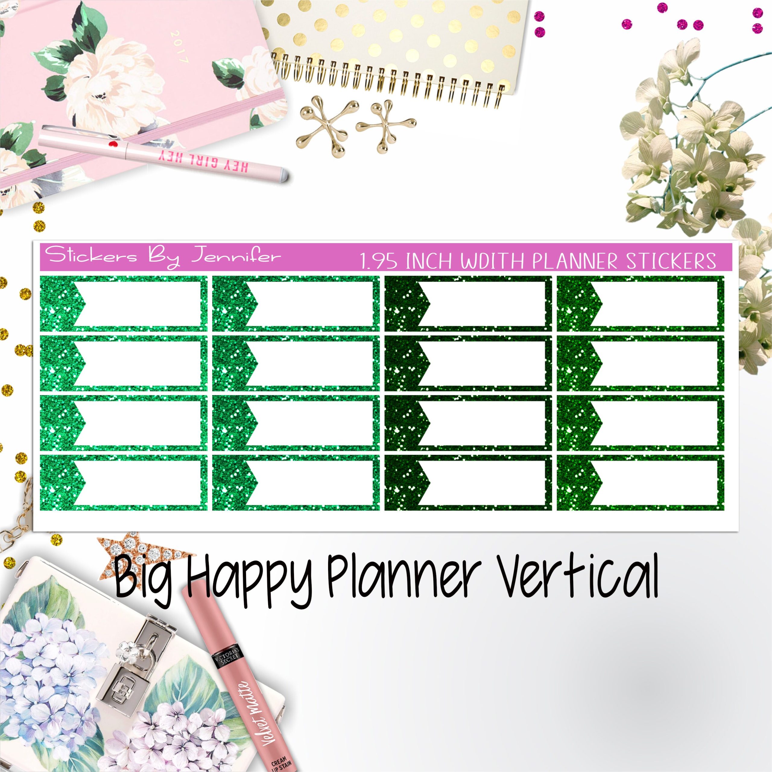 Glitter Labels 1.95 inch Width Quarter Boxes 058 for Big Happy Planner Vertical Planner Stickers