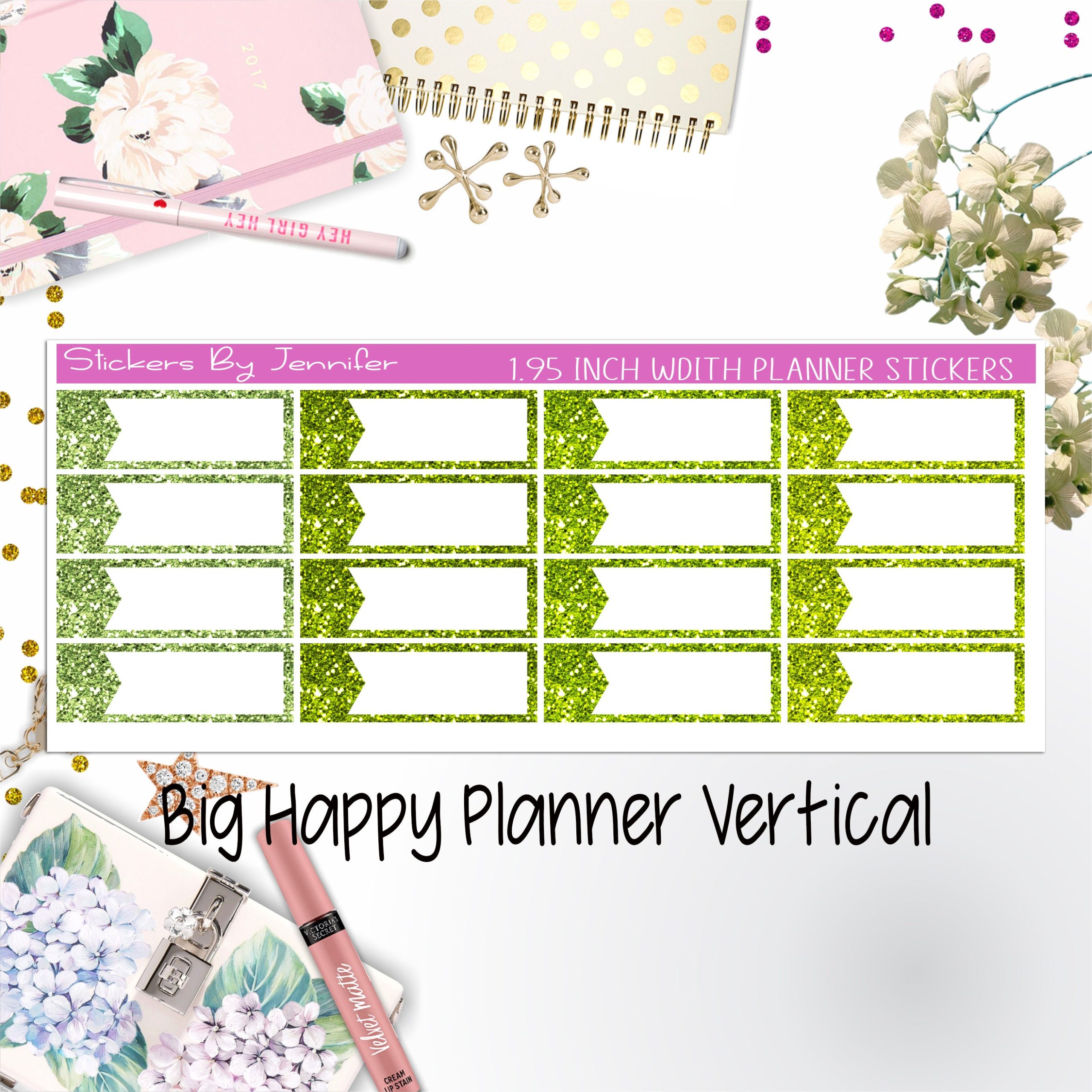 Glitter Labels 1.95 inch Width Quarter Boxes 060 for Big Happy Planner Vertical Planner Stickers