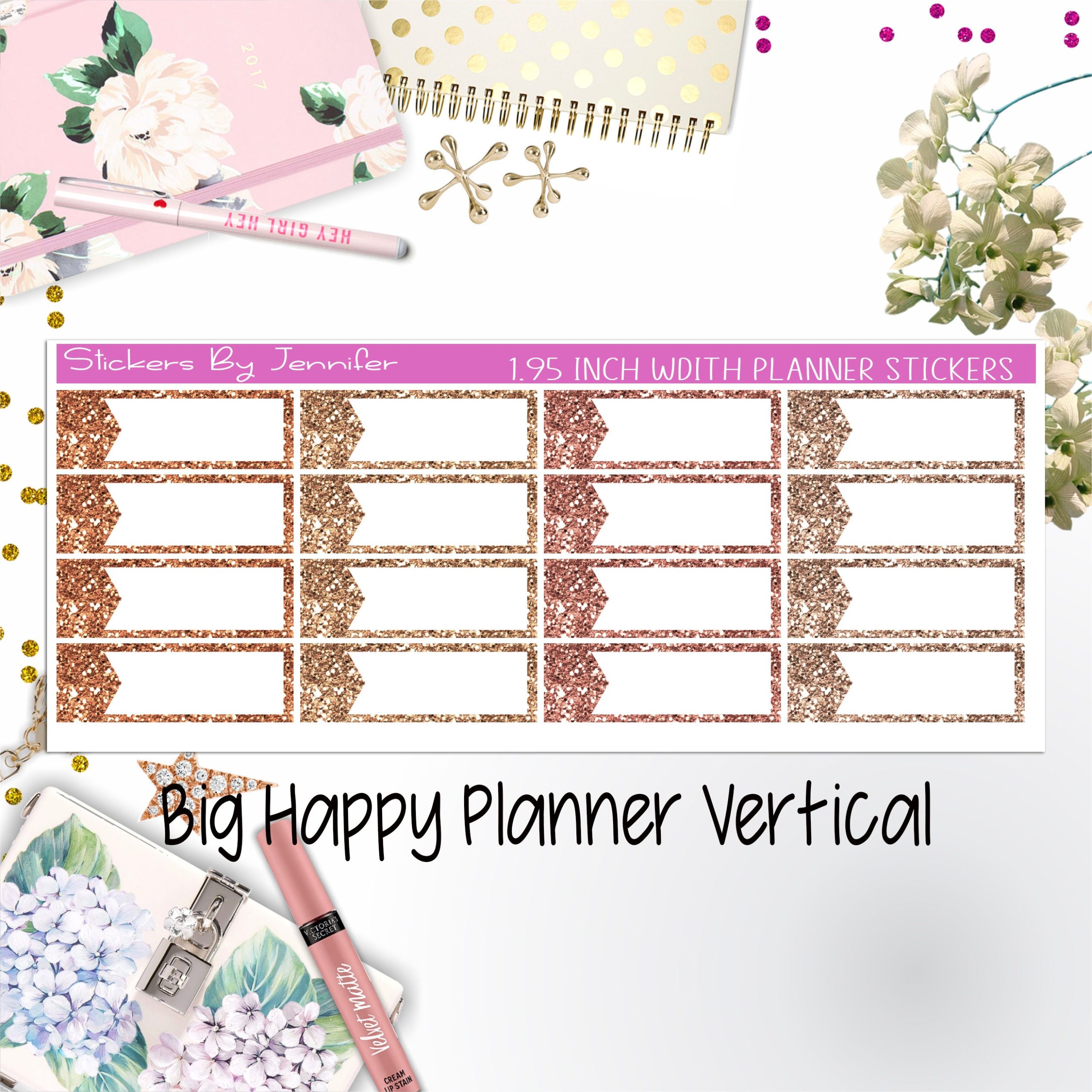 Glitter Labels 1.95 inch Width Quarter Boxes 072 for Big Happy Planner Vertical Planner Stickers
