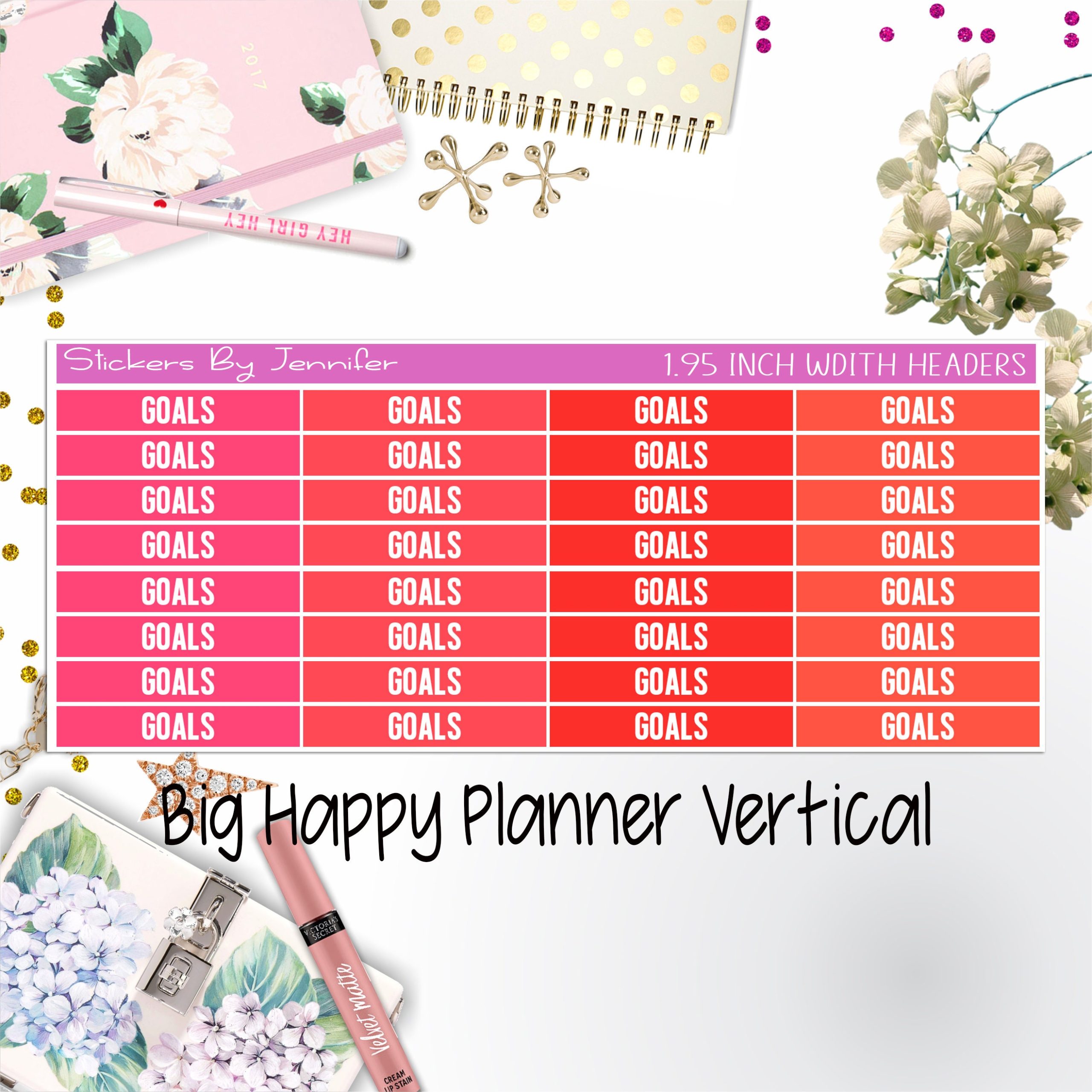 Goals Headers 1.95 inch Width 146 for Big Happy Planner Vertical Planner Stickers