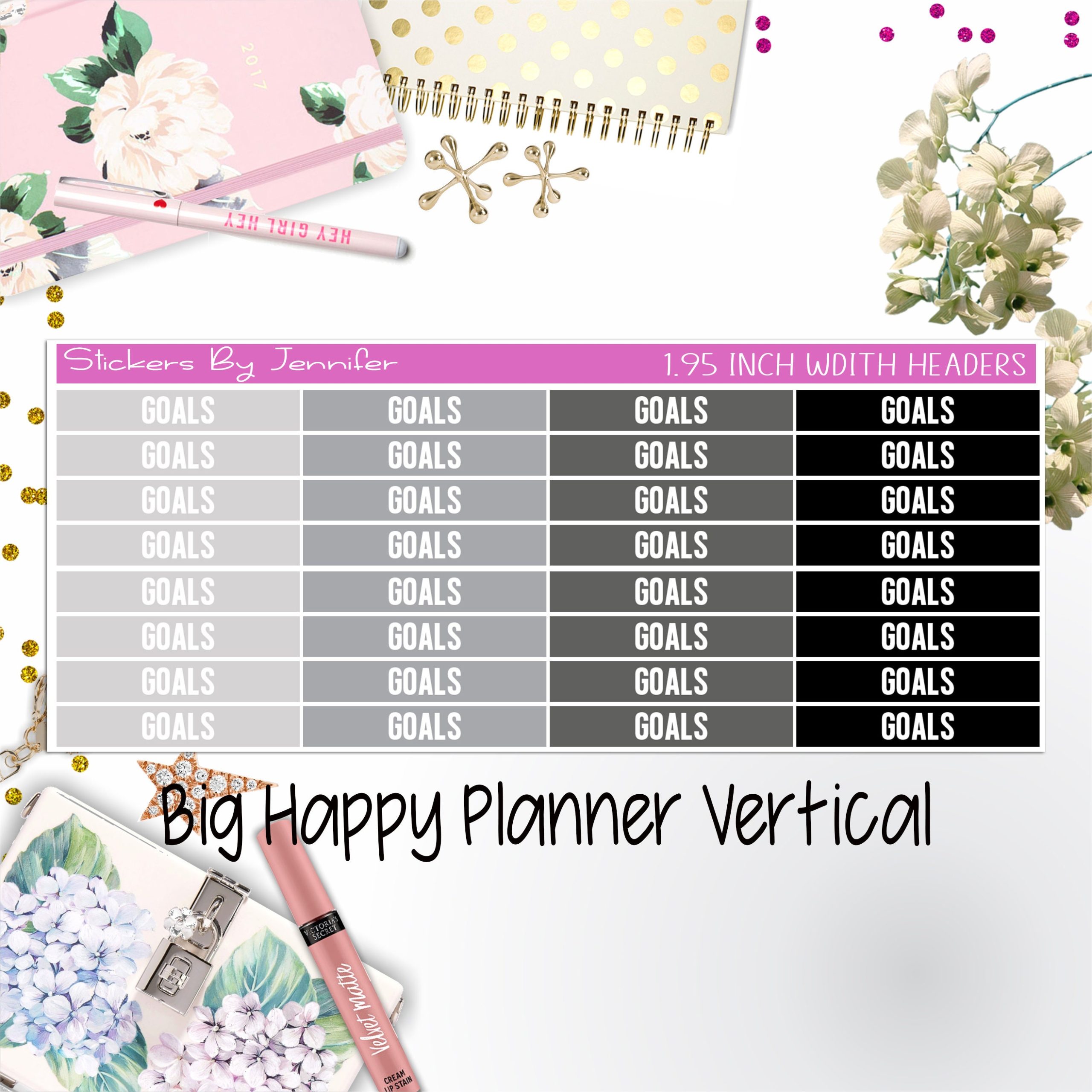 Goals Headers 1.95 inch Width 150 for Big Happy Planner Vertical Planner Stickers