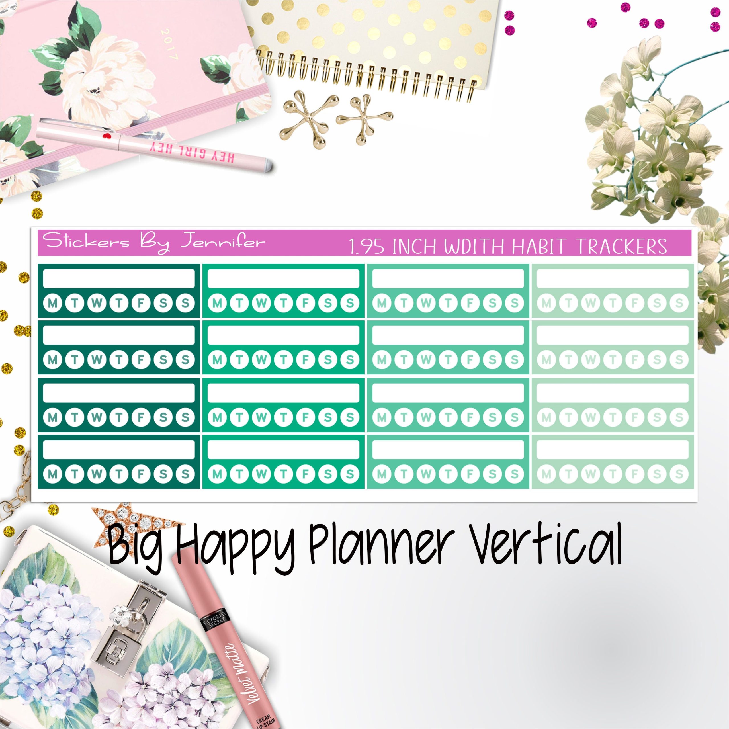 Each sticker is measured 1.95 width. The stickers are sized to fit Vertical Big Happy Planners.