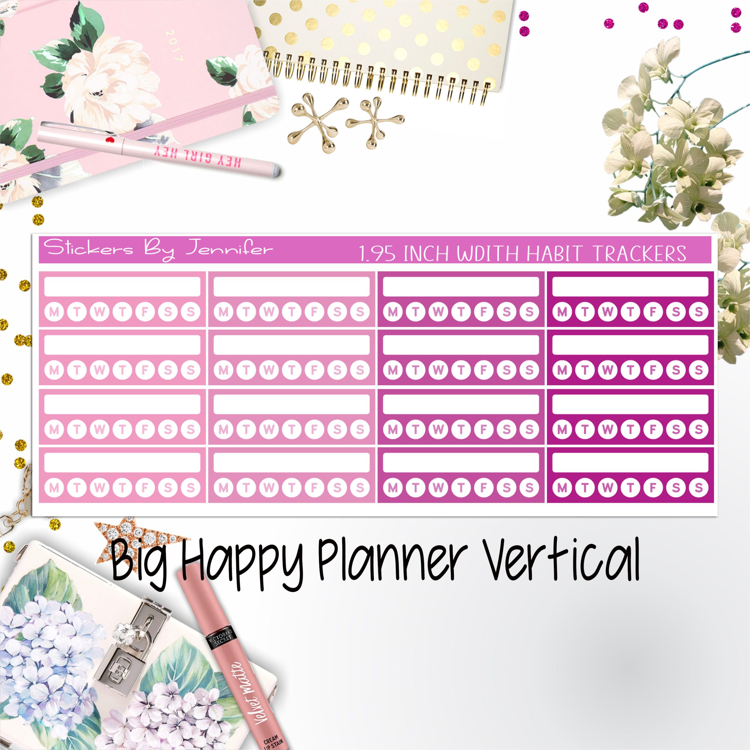 Habit Trackers 1.95 inch Width Quarter Box Labels 040 for Big Happy Planner Vertical Planner Stickers