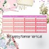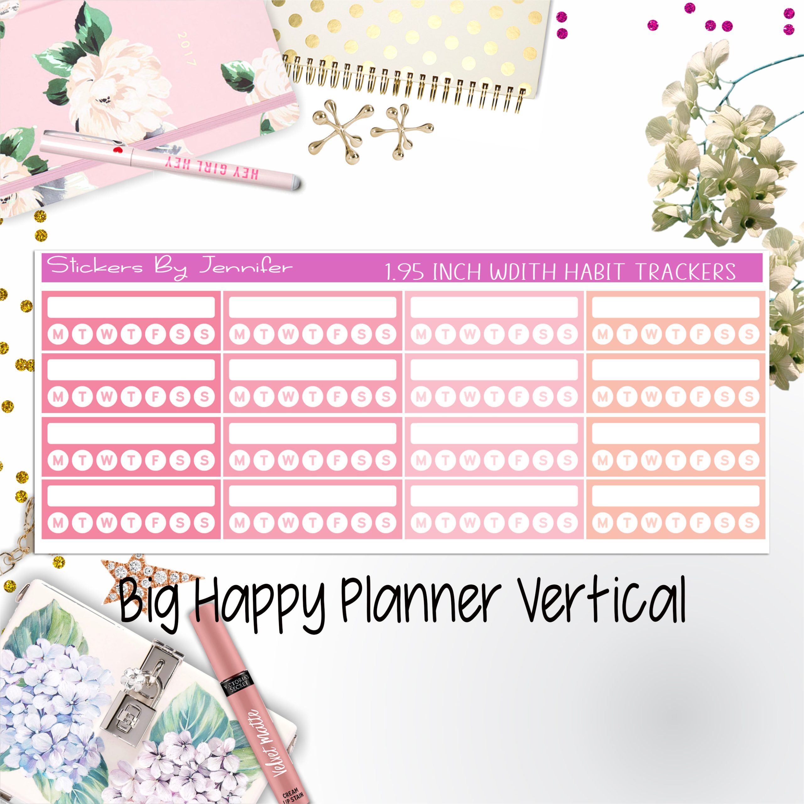 Each sticker is measured 1.95 width. The stickers are sized to fit Vertical Big Happy Planners.