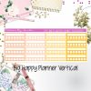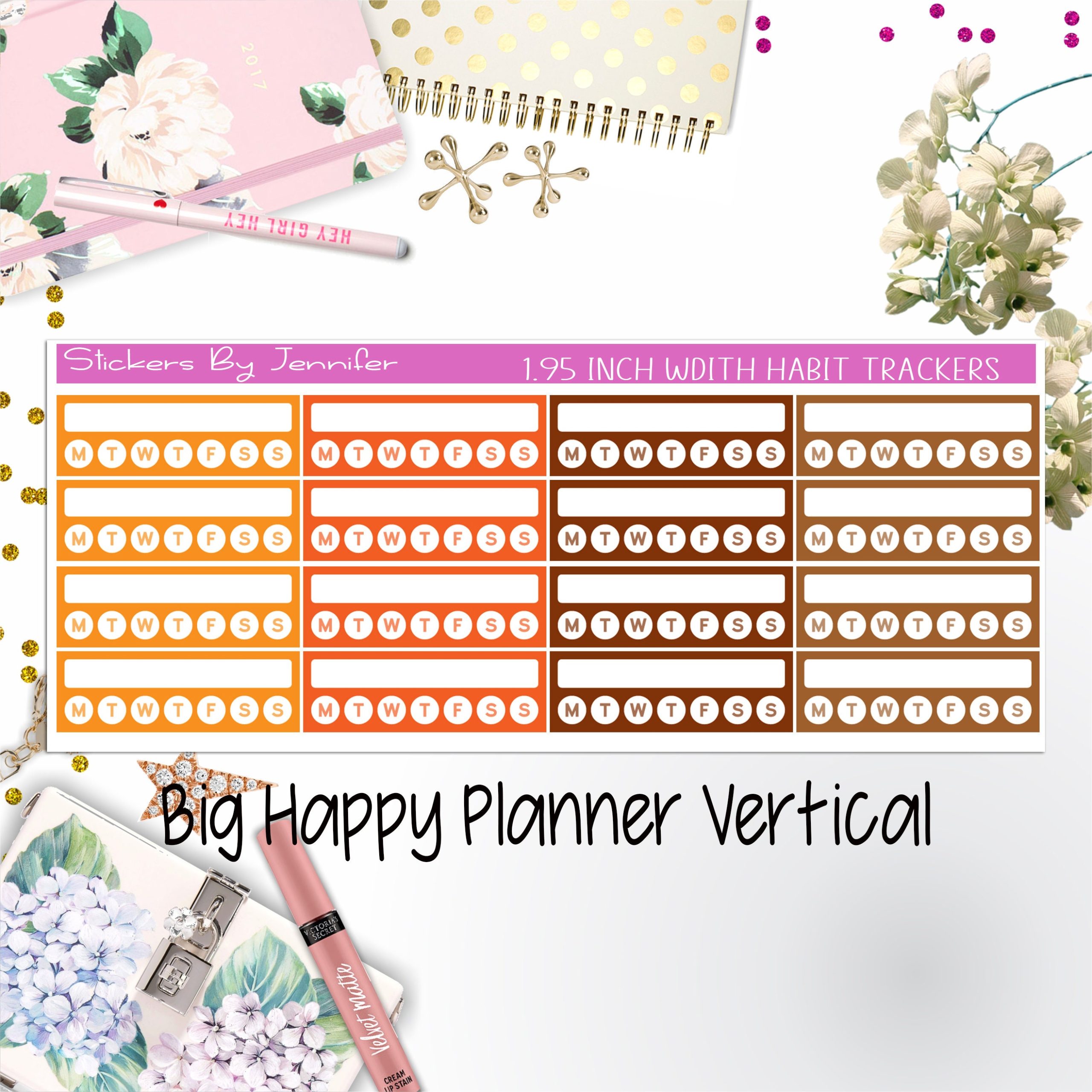 Each sticker is measured 1.95 width. The stickers are sized to fit Vertical Big Happy Planners.